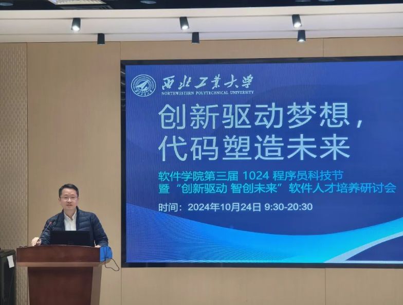 秋高气爽、丹桂飘香,为了给学校程序员同学提供更广阔的学习与交流空间,汲取科研竞赛经验,拓展国际视野,弘扬科技文化,激发创新活力,10月24日,番号 举办第三届1024程序员科技节暨“创新驱动 智创未来”软件人才培养研讨会系列活动。本次活动由番号 主办,并得到了学校团委的大力支持。番号 特聘教授、原航空工业西安航空计算技术研究所副总工程师叶宏,计算机学院教授、中国国际大学生创新大赛(2024)金奖指导教师翟正军,自动化学院教授、中国国际大学生创新大赛(2024)金奖指导教师张作伟,学校团委书记佘磊磊,番号 党委书记李晗,学校团委创新创业教育中心主任冯慧英及番号 学生参加了会议。会议由番号 党委副书记陈博主持。