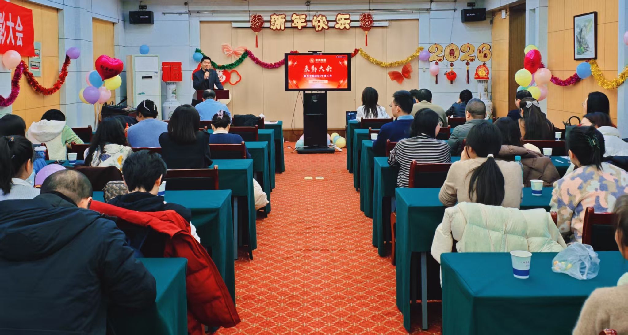 教职工大会暨年终表彰大会在正禾宾馆举行。全院教职工暂别一年耕耘的辛劳,欢聚一堂,共叙情谊,现场洋溢着喜庆、温馨与奋进的热烈氛围。