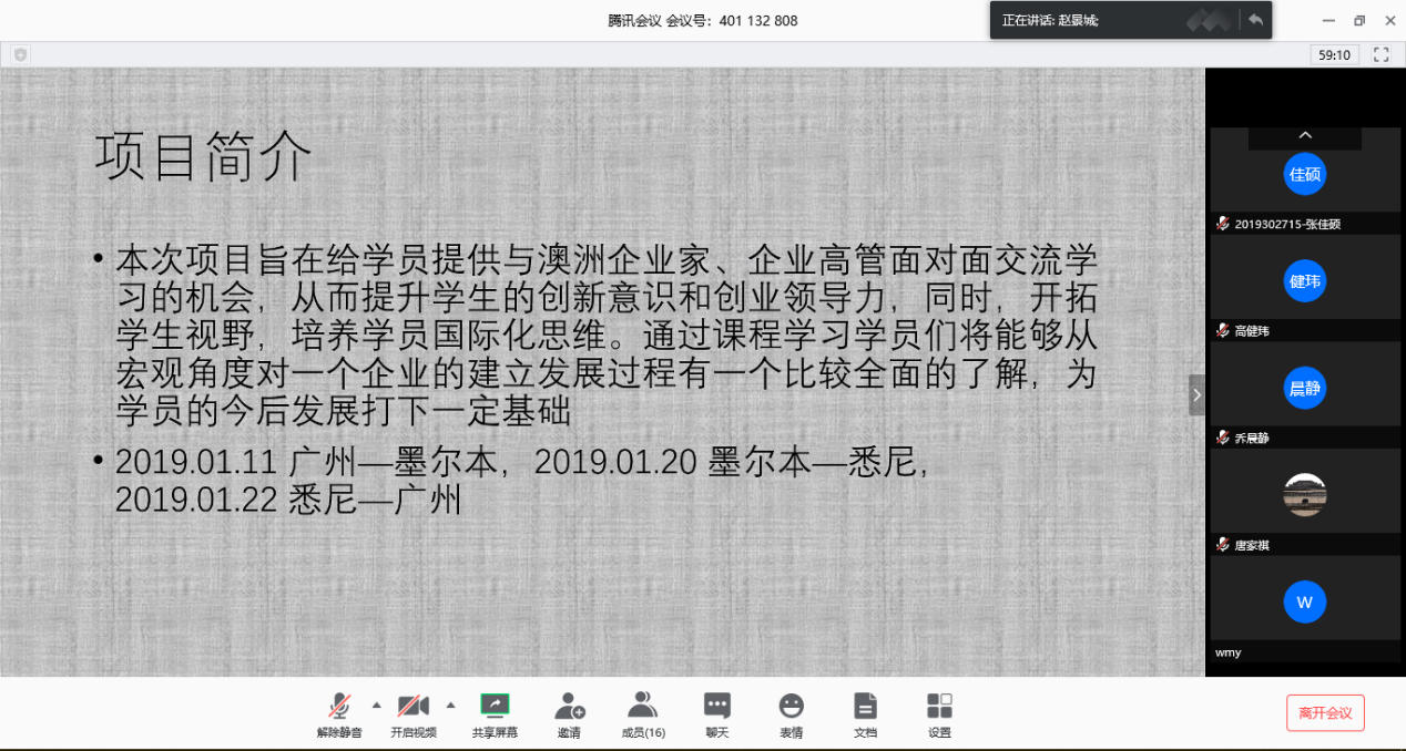 于腾讯会议系统成功举办2020墨尔本大学、麦吉尔大学寒假项目分享会。本次分享会由此次寒假项目带队老师、番号