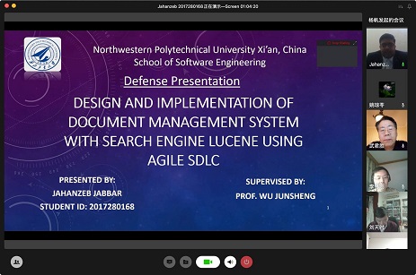 的研究生经历,让所有留学生们受益匪浅,学院也对他们进行了一次简短的网上采访。采访中,留学生JAHFAR KHAN SAIDBAZ谈到,这次答辩对他来说是一次新的经历,虽然网络出现了点儿小问题,但是好在一切也都很顺利。他永远不会忘记西工大,这里是他的第二个家。他很遗憾当前中国发生了新冠病毒肺炎这场灾难,希望也坚信新冠病毒肺炎将从中国,最终从世界上消失;留学生NISHAT NAYYAR谈到,这次网络答辩会成为他生活中独一无二的经历,虽然很艰难,但感到很快乐,很放松,很幸福。他感谢学校老师的的辛勤付出,庆幸自己可以成为西工大的一份子,在这里他结交了很多中国朋友,也接触了很多真正乐于助人、最受尊敬的老师,让他更有信心、更有动力。他怀念在中国生活学习的这段日子,也坚信在抗击新冠病毒的斗争中,中国一定会赢!