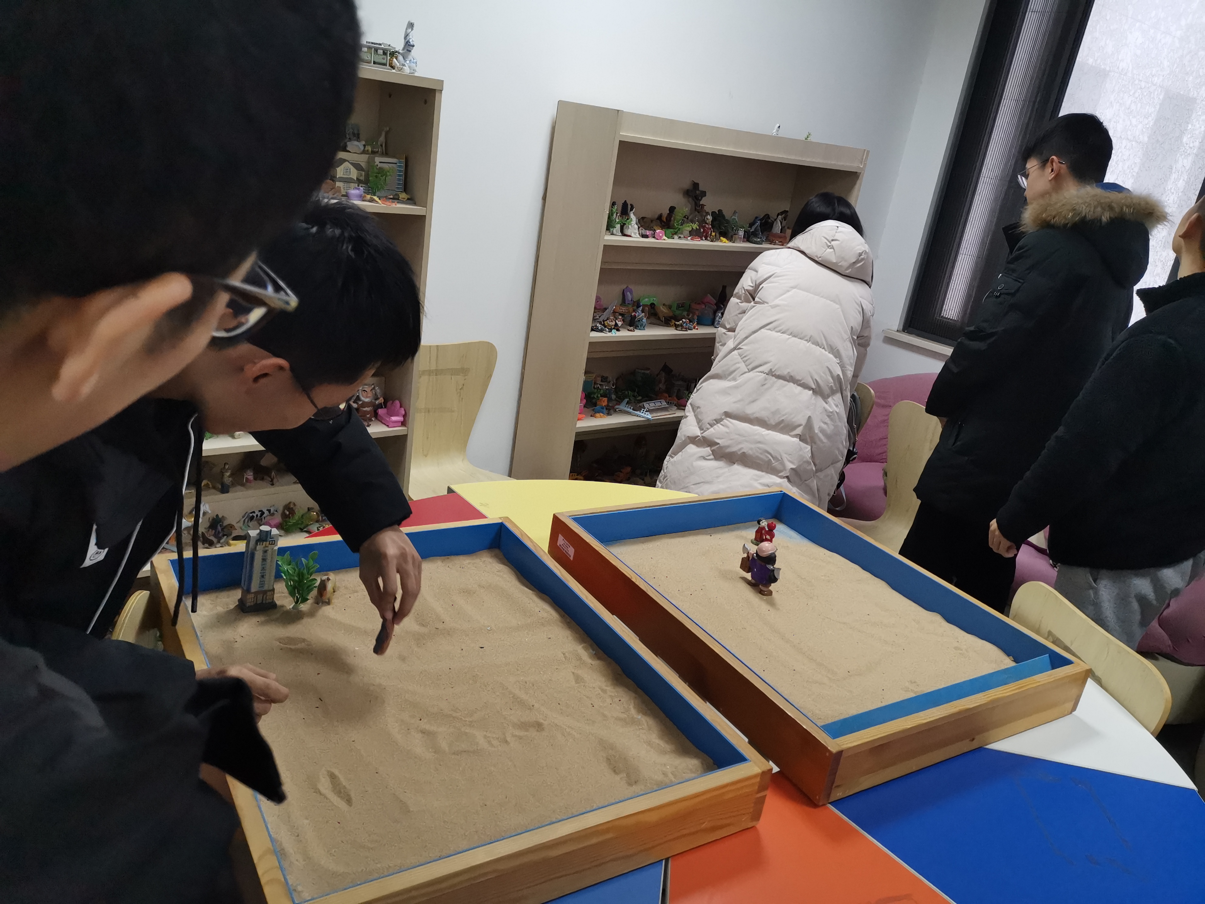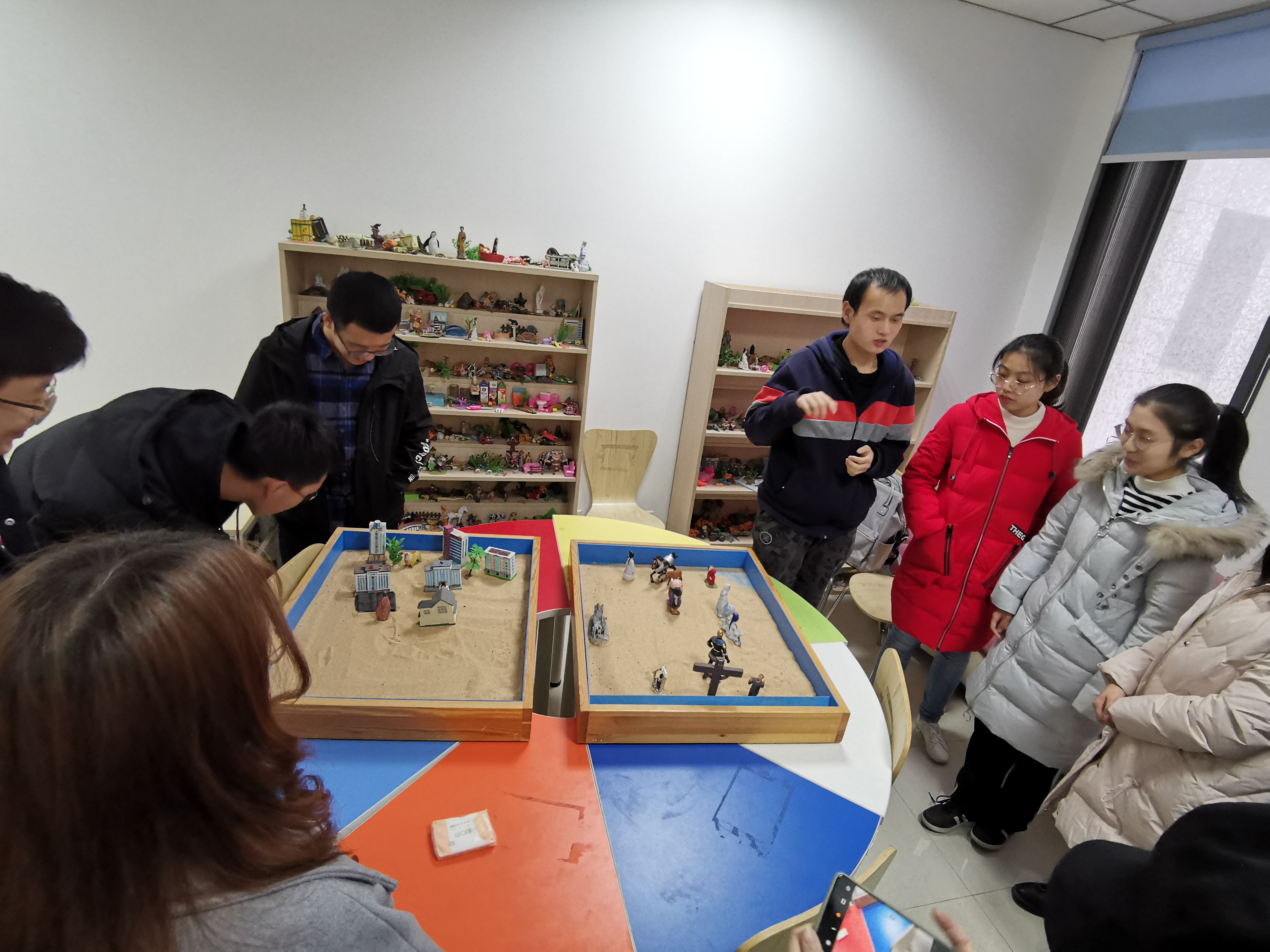 在长安校区启翔楼218心理咨询室举行了2019级心理委员团体辅导沙盘体验活动,番号