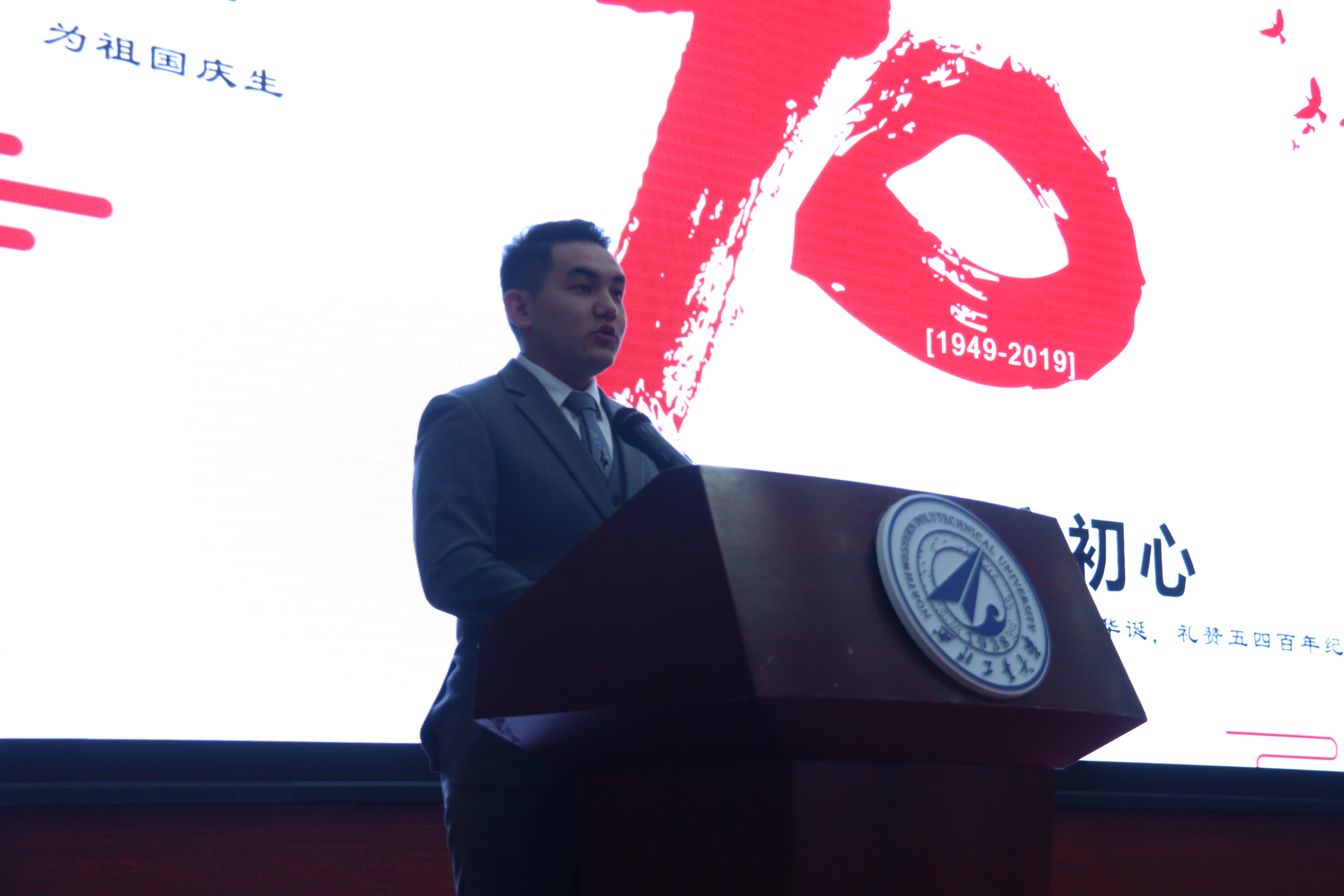 辅导员代表王硕刚老师以及三位计算机类的学生代表。