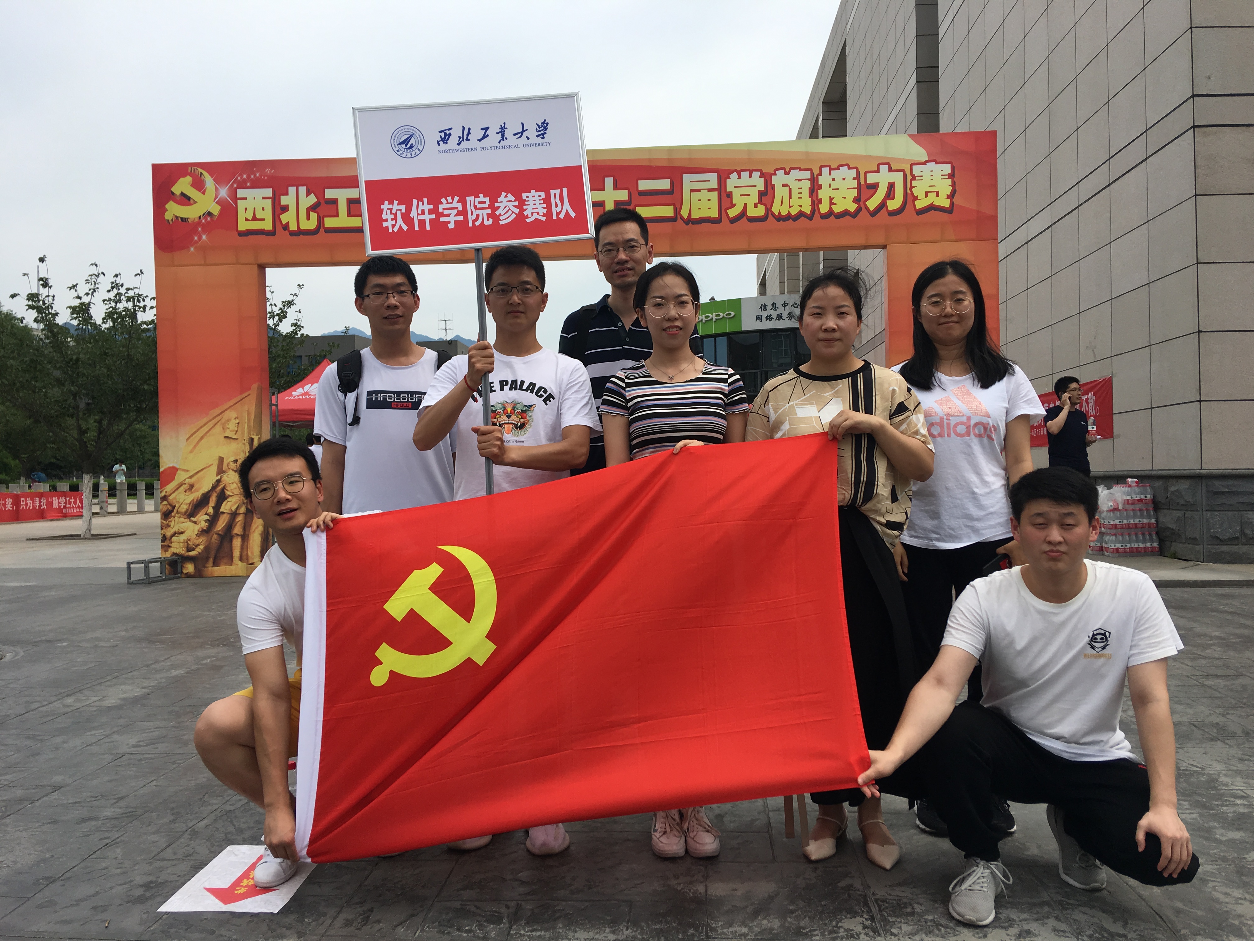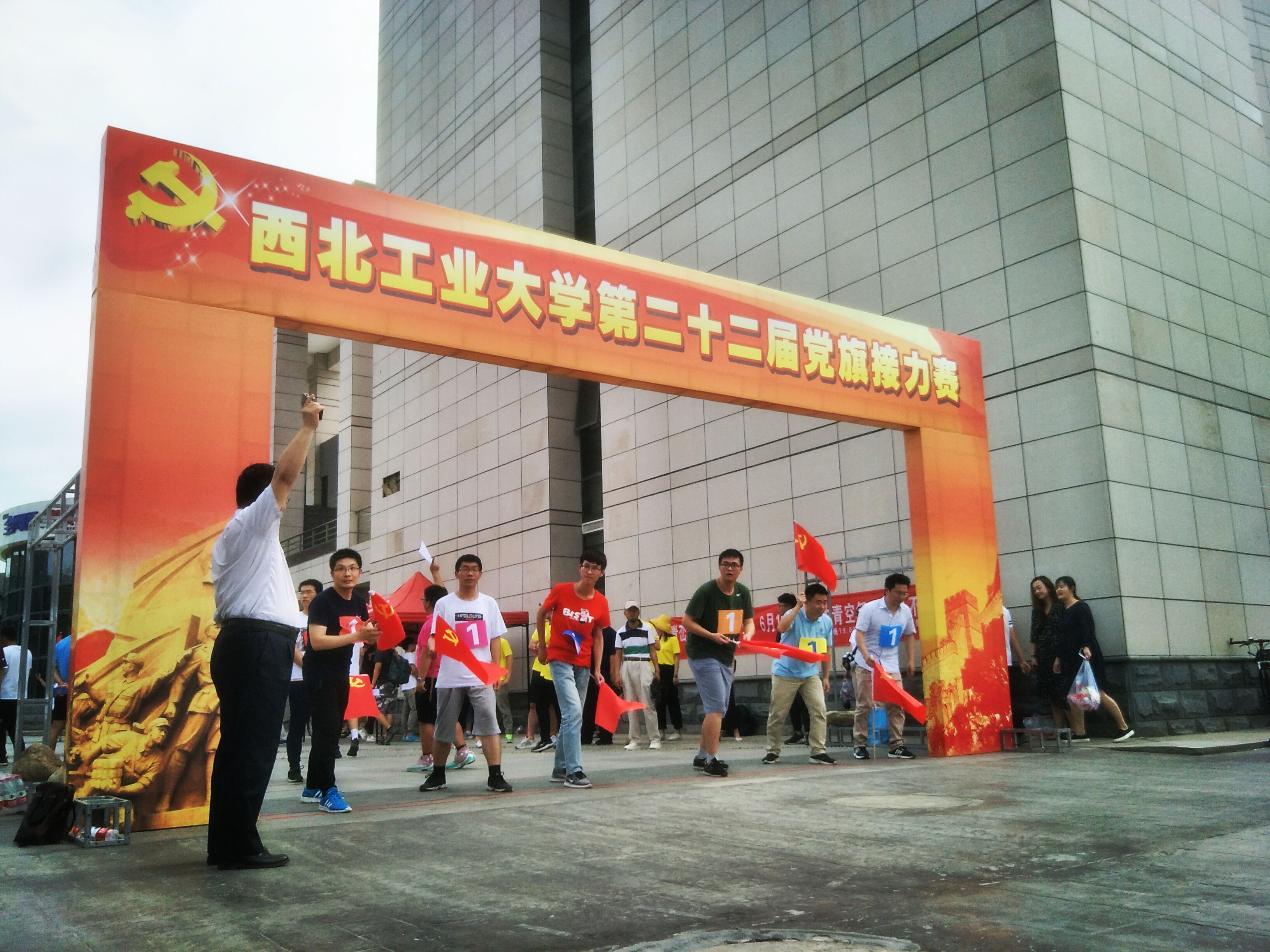 第二十二届党旗接力赛在数字化大楼前成功举行,番号