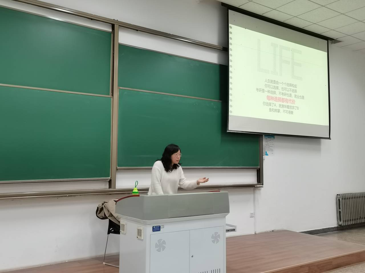 党委副书记张琨为2018级本科生进行了以“就业在左,考研在右,一场梦想的追逐”为主题的职业生涯规划讲座。