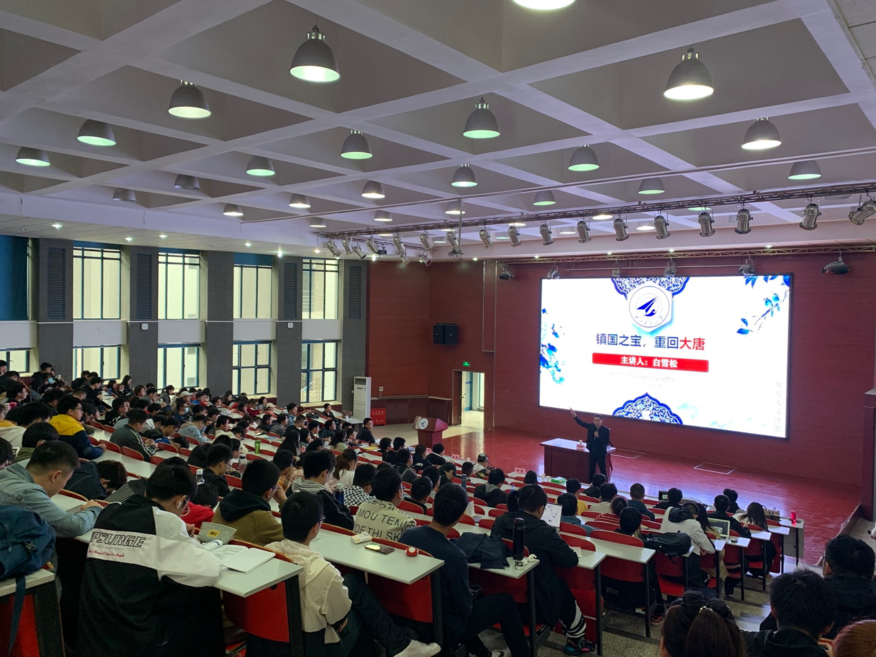 、数学与统计学院承办的2021年“翱翔人文讲堂”第二期在长安校区教西D100举行。西安碑林博物馆特级讲解员白雪松应邀为我校师生带来“镇国之宝,重回大唐”主题讲座。党委学生工作部副部长、学生处副处长彭蓉、数学与统计学院党委副书记张莹及全校300余名师生参加了本次讲座,讲座由番号