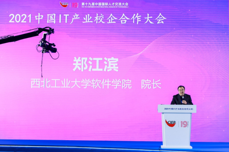 郑江滨院长带队参加“第十九届中国国际人才交流大会—2021年中国IT产业校企合作大会”,并做大会发言。