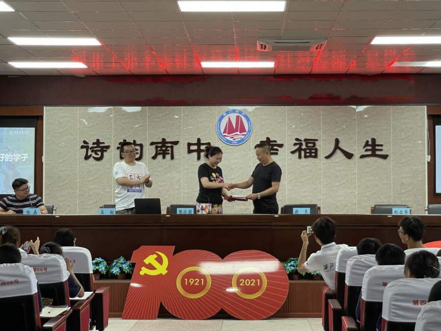 实践队带队老师高翔以及实践队全体成员和南门初中学生,在会议中,赵校长首先对我们的到来表示热烈欢迎,并向我们介绍了南门初中国家级“国防教育示范校”、区级“足球特色学校”等的创建历程,最后赵校长表示学校会大力支持番号