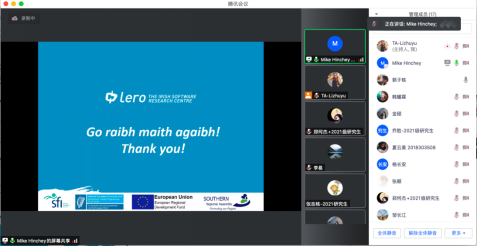 邀请,爱尔兰利默里克大学的软件工程教授Mike Hinchey为我校学生在线上开展了“Evolving Critical Systems/任务关键软件系统演化”课程。这门课程涉及到软件工程领域中软件系统的发展历史以及演化方式,参与到该线上课程的学生有来自番号