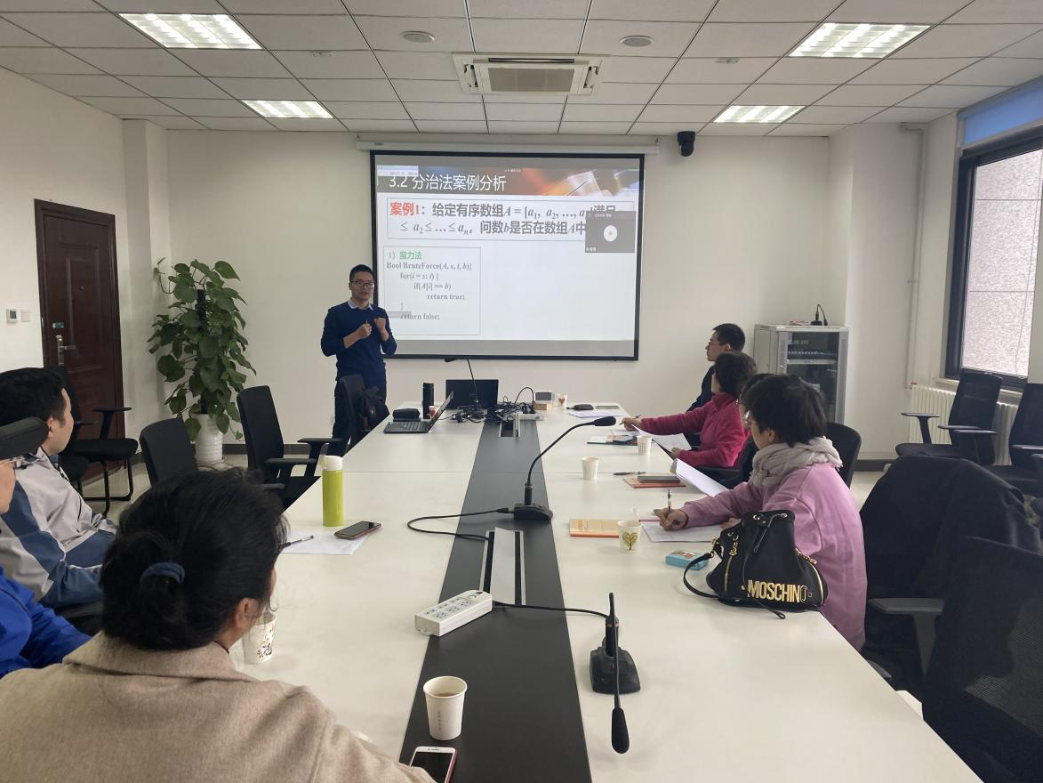 首先,由罗建超老师主要讲解了《算法分析与设计》中课程思政的教学内容和教学案例。通过回顾了分治法的基本思想,讲解了如何用分治法的基本思想求解优化问题,并将分治法的基本思想扩展到企业的实际问题中,用企业的案例培养学生解决实际问题的能力。在案例的分析中,他将实现高效率的算法好处上升到节能减排的高度,以此鼓励同学们好好学习算法,并尽可能实现高效率的算法。