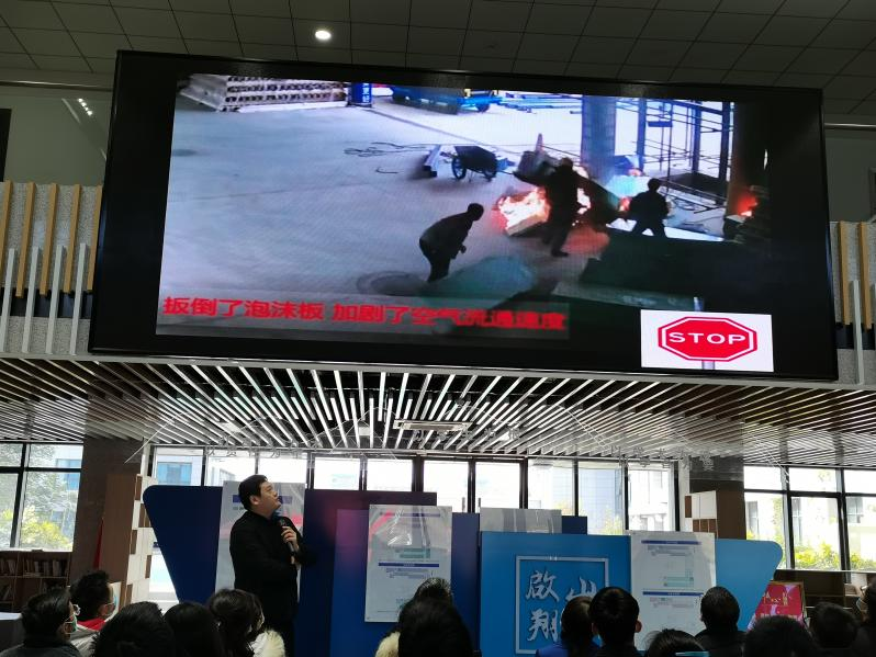 学校保卫处消防科许磊同志结合消防安全案例做了专题报告,并对消防疏散演练注意事项进行了说明。在消防技能现场教学环节,许磊向师生们讲解了灭火器的正确使用方法和注意事项,并安排大家分组进行了实际操作。