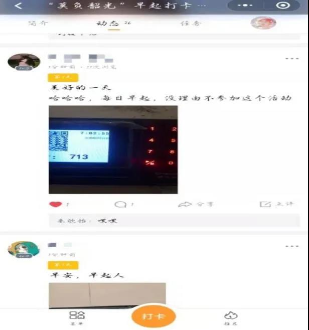 本次活动自开展以来,取得了良好的效果,同学们都纷纷加入本次早起打卡计划,并发表自己对于当天打卡的感想。