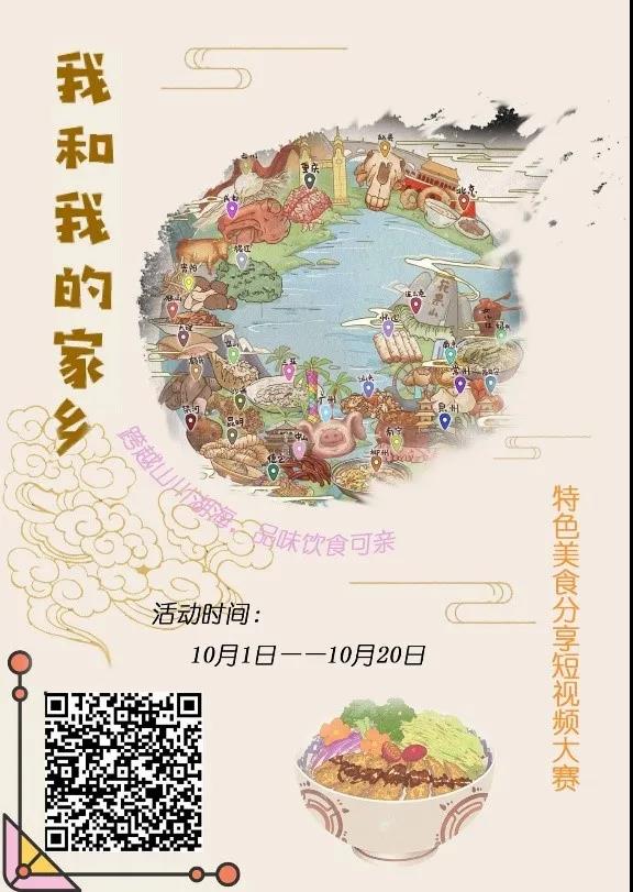 学生九州美食文化协会联合承办的“我和我的家乡”特色美食分享短视频大赛十月份在线上开展。该活动希望同学们可以在视频中展现出各地的特色,传递每个地区的美食文化!