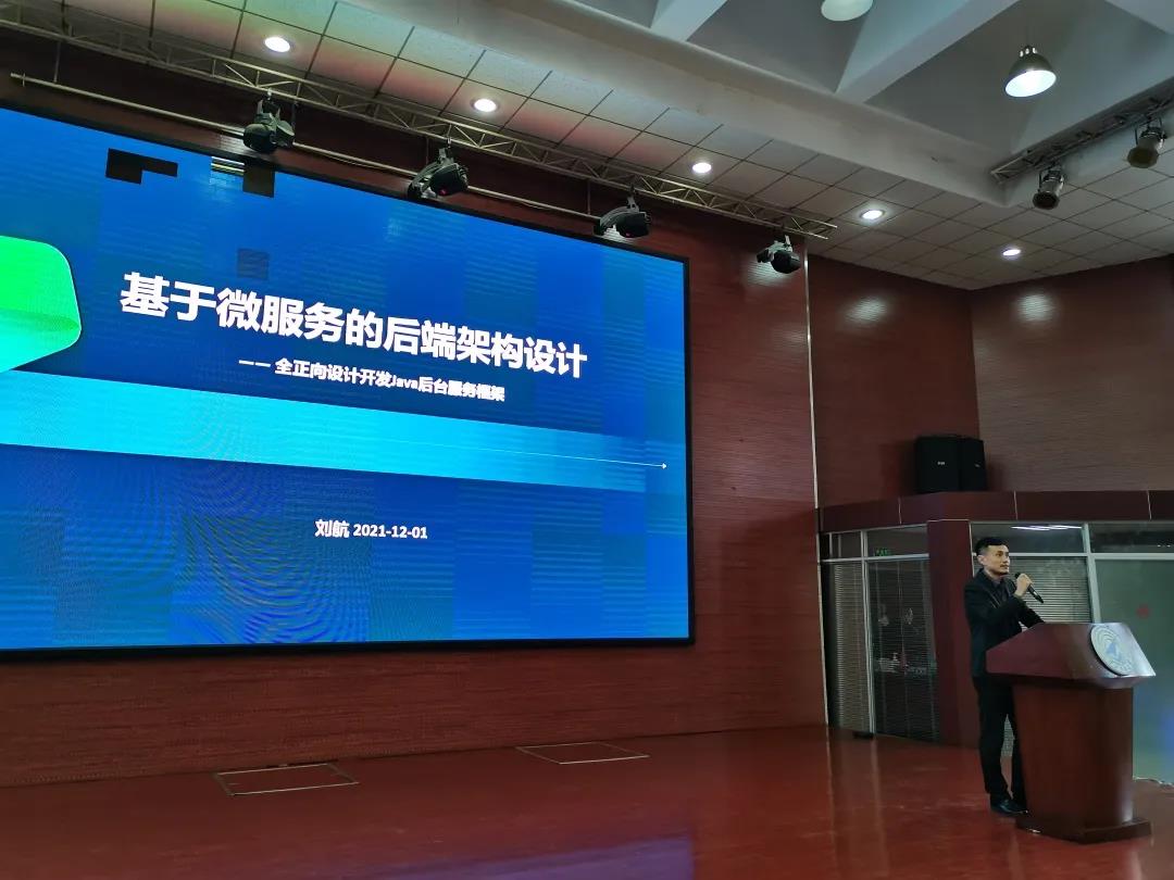 2005级校友刘航做客“翱翔榜样力量”报告会,为学院师生在教西D100室作题为《基于微服务的后端架构设计》的精彩讲座。番号