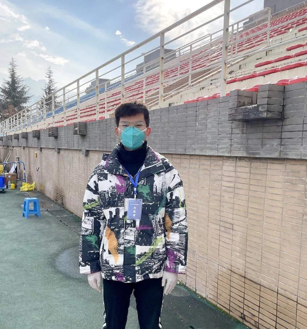 研二的张浩鹏是12月20日晚云天苑操场志愿服务队的一员, 张浩鹏负责秩序维护和管理医疗物资,他指引做完核酸检测的同学与老师有序离场,告知他们云天苑操场临时的出口的具体位置,同时为医护人员和志愿者配送相应的医护资源,包括口罩、医用棉签、透明面板、手套、免手洗消毒液。