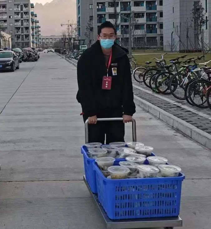 的送餐志愿者服务。“在送餐的过程中,看到宿舍门口有的同学细心放的送餐盒子、精心绘制的一些图画、写的一句句辛苦了,西安加油,我也感受到了同学们对学校的支持和对学校、对西安的信任感。西安加油!必胜!”