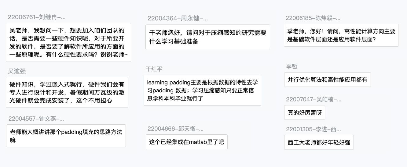 四场主题学术讲座信息丰富、内容深入浅出、启发性强,学员们认真聆听,汲取学术前沿知识的同时寻找自己感兴趣的研究方向。活动期间学员们与专家们互动交流,通过老师们的讲解和答疑,学员们对自己感兴趣的研究领域有了更加深入的了解。