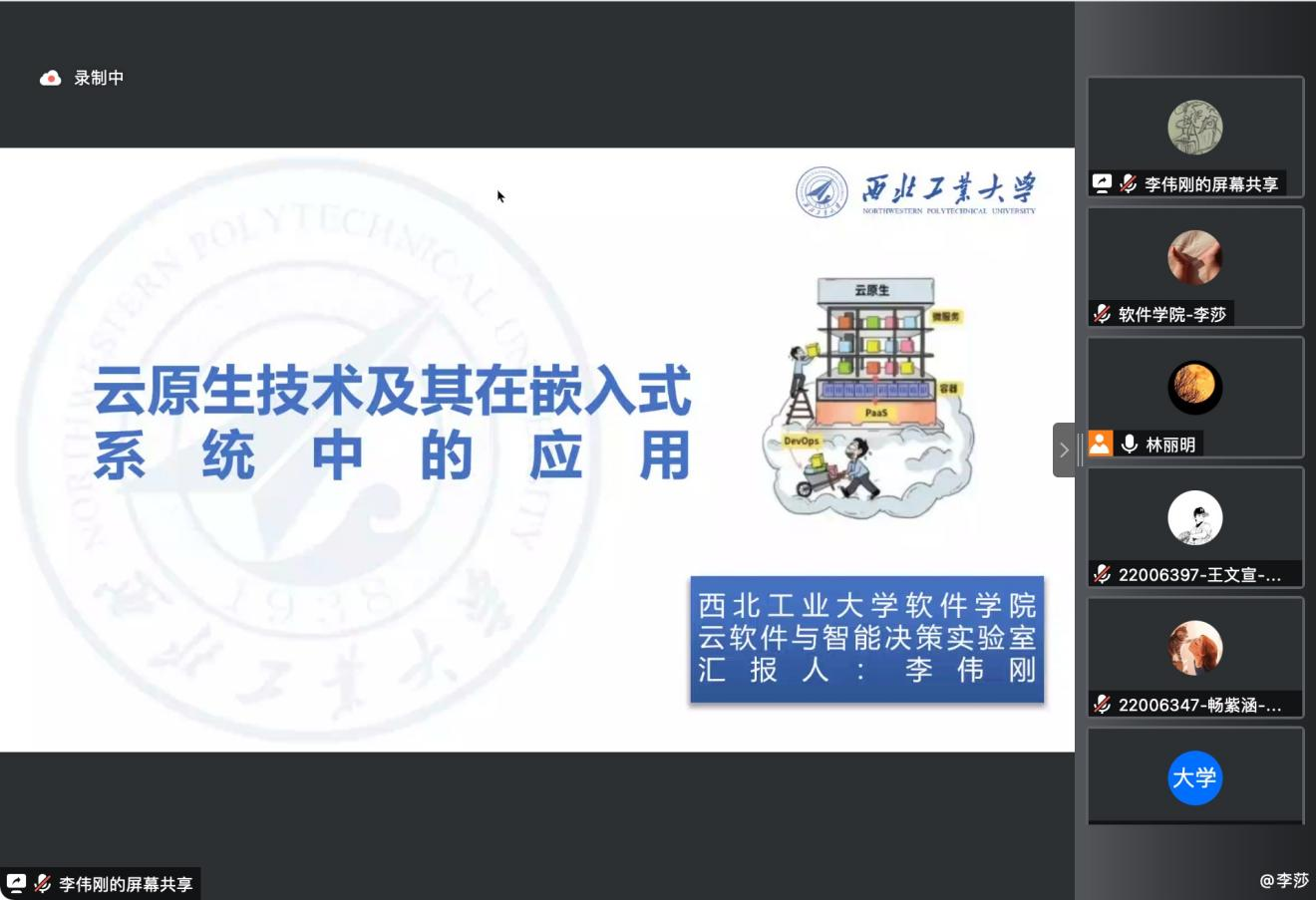 随后,张仕进教授、贺亮教授、武君胜教授和李伟刚副教授分别进行了学术专题讲座。首先,张仕进教授作了主题为《扎根祖国大地,发展自主工业软件》的讲座,在讲座中张仕进教授以中国工业发展现状展开,结合实例讲解我国工业软件的背景及发展现状,分析我国工业软件发展面临的瓶颈及痛点,指出我国工业软件发展突围之道。其次贺亮教授作了主题为《天基物联网与服务平台》的讲座,贺亮教授在讲座中主要介绍商业航天飞速崛起与国家政策支持现状,以各式前端案例讲解了航天基础理论与知识,同时展示目前在研的天基物联网星座与服务平台项目,在此基础上为同学们提供参考研究建议。随后,武君胜教授作了主题为《超大型工业软件研制现状与挑战》的讲座,武君胜教授在讲座中以工业软件概念、分类、发展路径及未来发展趋势等进行内容导入,以航空工业软件为例分析大型复杂工业软件研制现状,分析工业软件研制面临的各种问题及挑战,并提出解决方案及思路。最后,李伟刚副教授作了主题为《云原生技术及其在嵌入式系统中的应用》的讲座,李伟刚教授在讲座报告中介绍云原生作为一种新型技术体系是云计算未来的发展方向,由此展示云原生的核心关键技术,并对云原生在嵌入式系统中的应用进行展望。