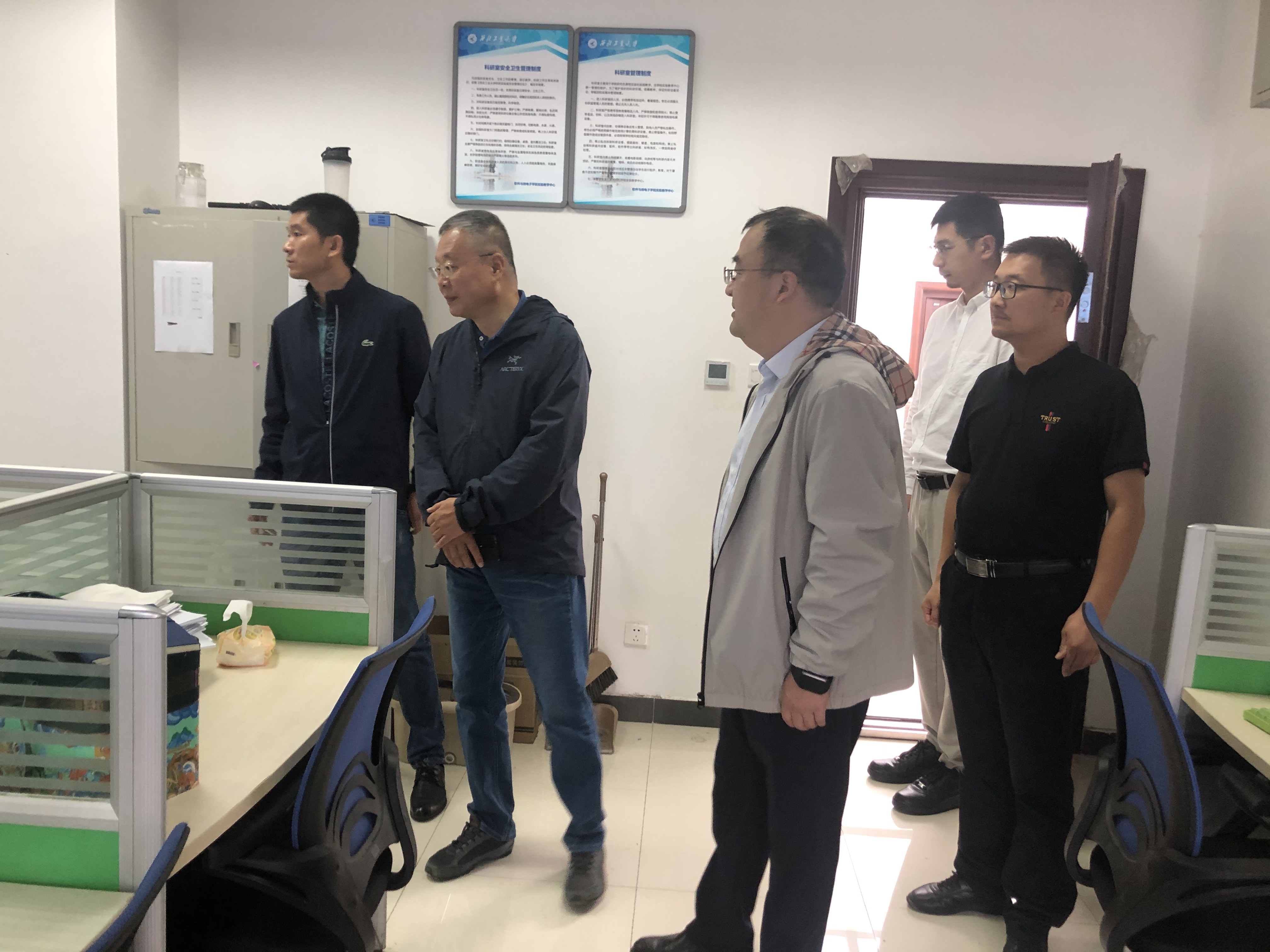 教师办公室、教学实验室和科研实验室进行了查看,详细了解用水、用电、设备运行、消防器材维护等设施,并重点针对实验室人员管理、设备管理、环境卫生等情况进行了检查,提出了改进要求。