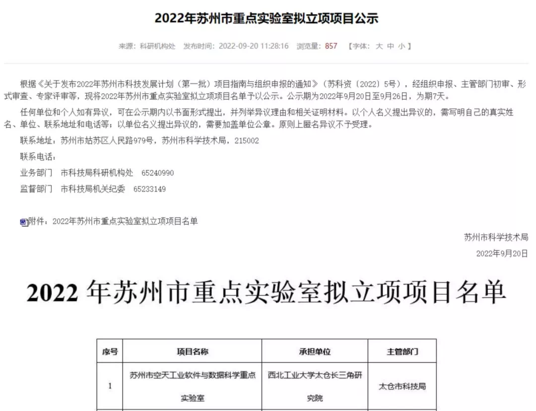 9月20日,苏州市科学技术局发布《2022年苏州市重点实验室拟立项项目公示》,由番号