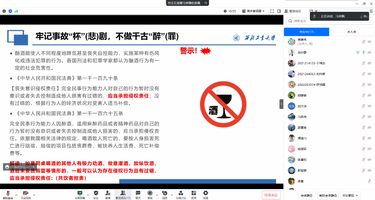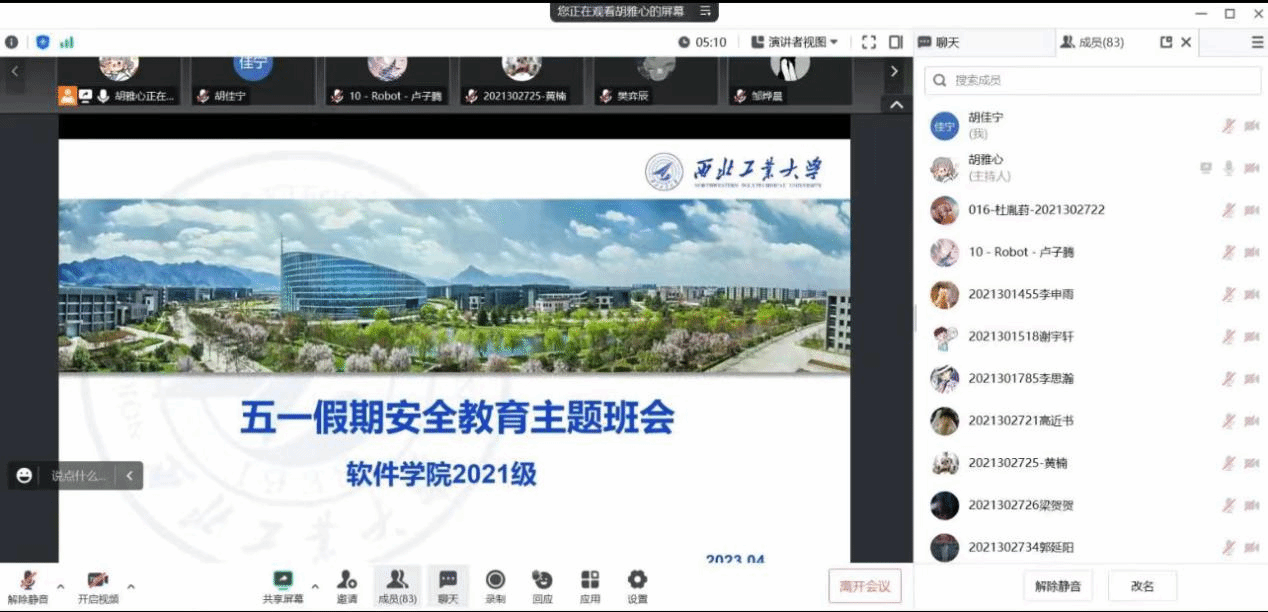 各年级分别从“离校安全”“乘车安全”“饮食安全”“旅游安全”等方面对学生进行了安全教育。五一假期,无论是留校学生还是离校的同学都需要注意人身安全、财产、交通等各方面的安全。呼吁广大学生在假期中要充分做好出行计划,自觉遵守交通规则,保障自身和他人的生命和财产安全,同时,各年级重点围绕财产安全、人身安全、查寝问题、交通安全和疫苗接种等假期安全注意事项进行了强化教育,并通过具体事例给同学们讲解了安全的重要性、如何防范危险、以及危险情况发生后如何理智处理等。