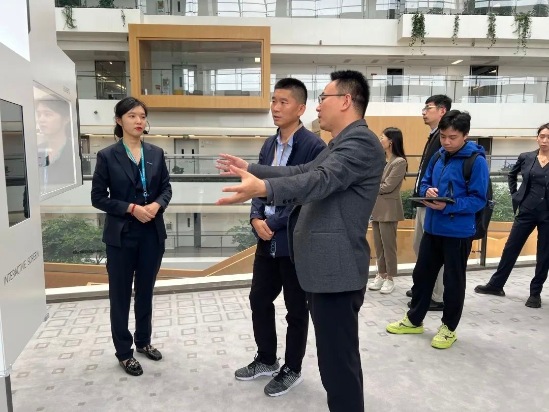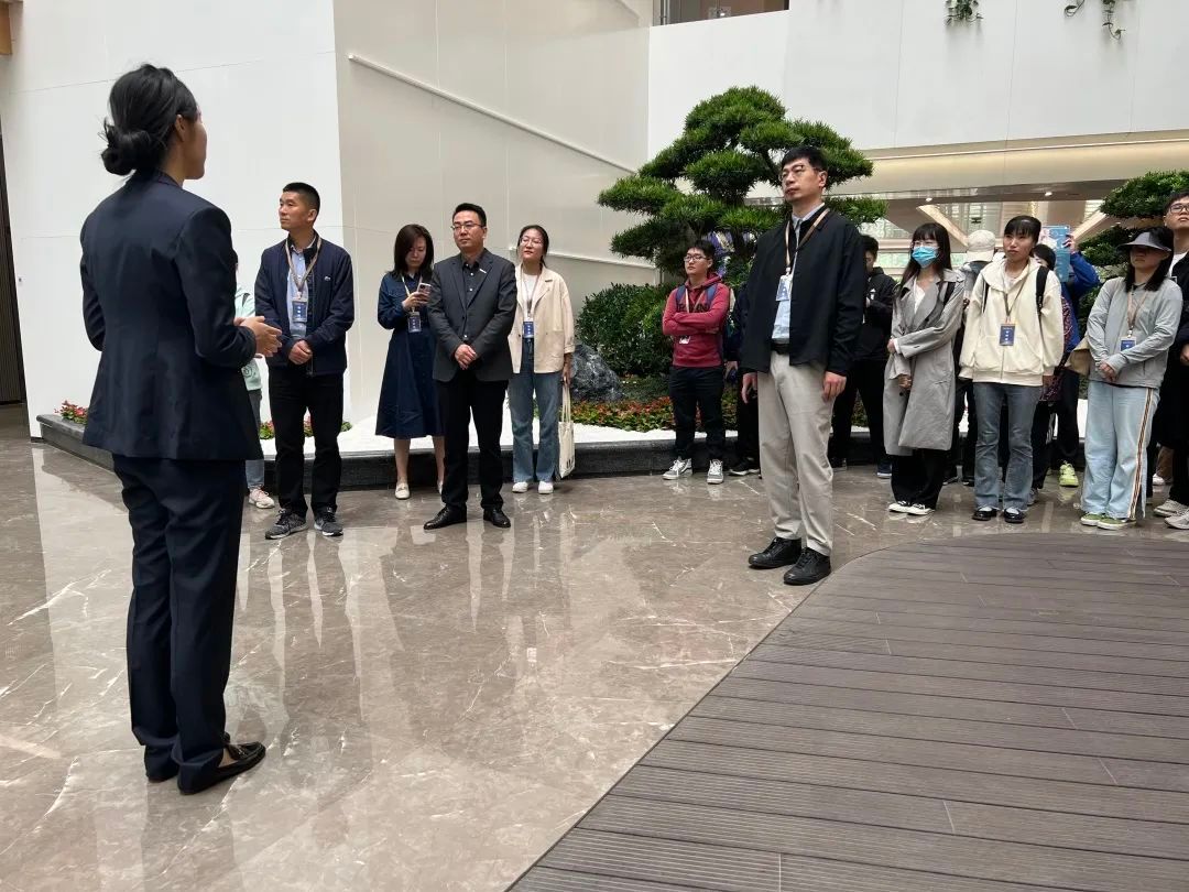 进入广联达西安数字建筑研发大厦后,广联达科技股份有限公司西安人力资源中心总监李超锋、人力资源经理房蕾、校园招聘经理张茂等工作人员带领学院一行参观了西安数字建筑研发大厦建筑,员工服务大厅,共享办公区,健身房等,同学们以第一视角了解企业深耕行业20余载的企业发展史、相关业务领域、企业自身核心技术自主权与专利著作。