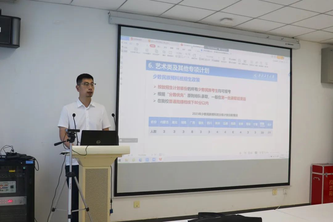 张龙随后详细解读2023年学校的招生政策、志愿指导、宣传方案、注意事项等内容,对上半年参与招生工作的学院领导和老师们表示感谢,张龙表示招生工作以落实《番号