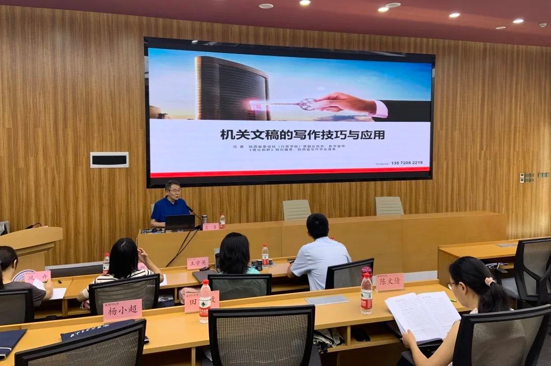 7月7日上午,范勇教授以《机关文稿的写作技巧及应用》为主题,结合自身多年实践经验,从文稿写作五步骤入手拆解写好文章的密码,并与大家分享“高度、深度、温度、角度、亮度”写作技巧五要领,并结合相关实例从专业视角与参会教职工进行交流;下午,陈仲昌副部长作《西工大校史中的人和事》报告,通过讲述校风校训与人才培养目标、百年办学路、辉煌新校史、未来奋进路,使大家更深入了解学校、热爱学校,切实提升为师生服务的质量。王一宁副主任作题为《守纪律 讲规矩 履职尽责推动学校“双一流”建设》专题报告,围绕学校纪检监察机构概况、新时代全面从严治党形势与任务、增强纪律意识等方面讲解,结合“青年干部警示教育片”中的典型案例为参会教职工讲授了一堂精彩生动的廉洁教育课。