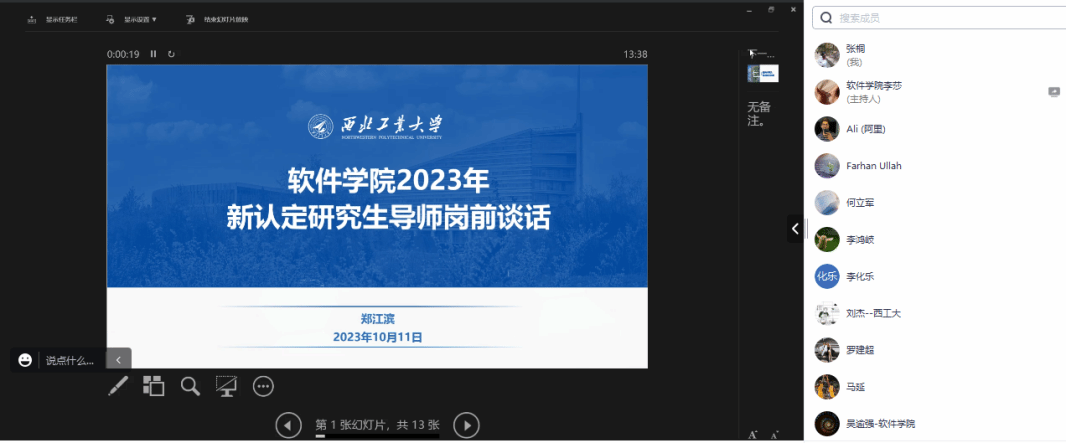 随后,全体新认定导师分别进行了表态发言。导师表示,通过谈话,已知晓导师岗位职责和权利、指导行为准则,以及激励与退出机制等国家、学校及学院相关政策和管理规定。同时,导师畅谈在今后研究生指导方面的计划与想法。