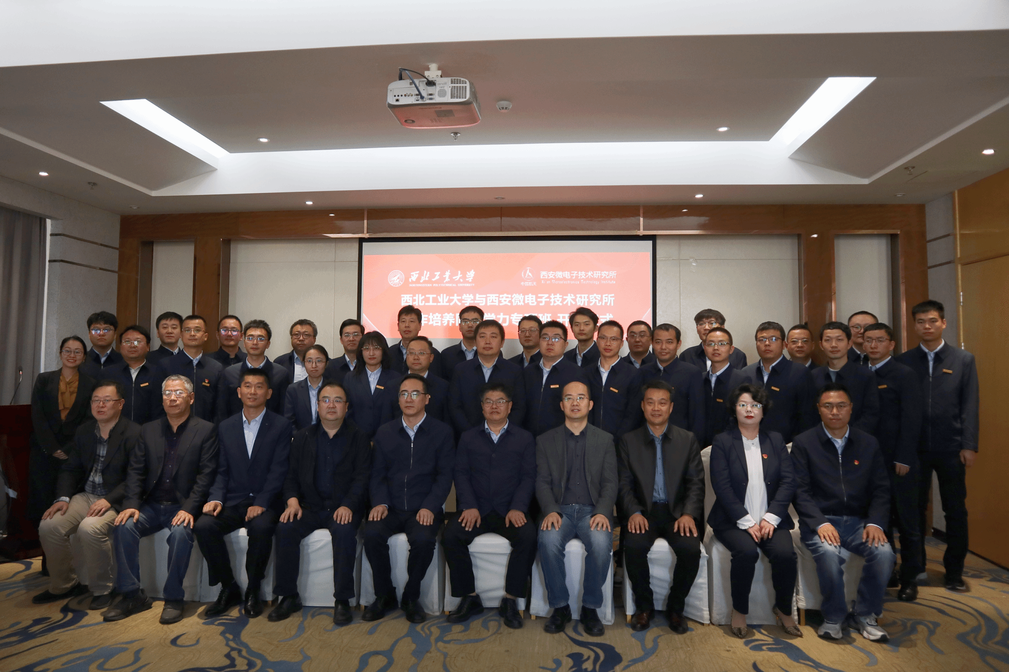 与西安微电子技术研究所(771所)合作培养同等学力专项班开班仪式在翱翔国际会议中心举行。西安微电子技术研究所党委书记薛东风,番号