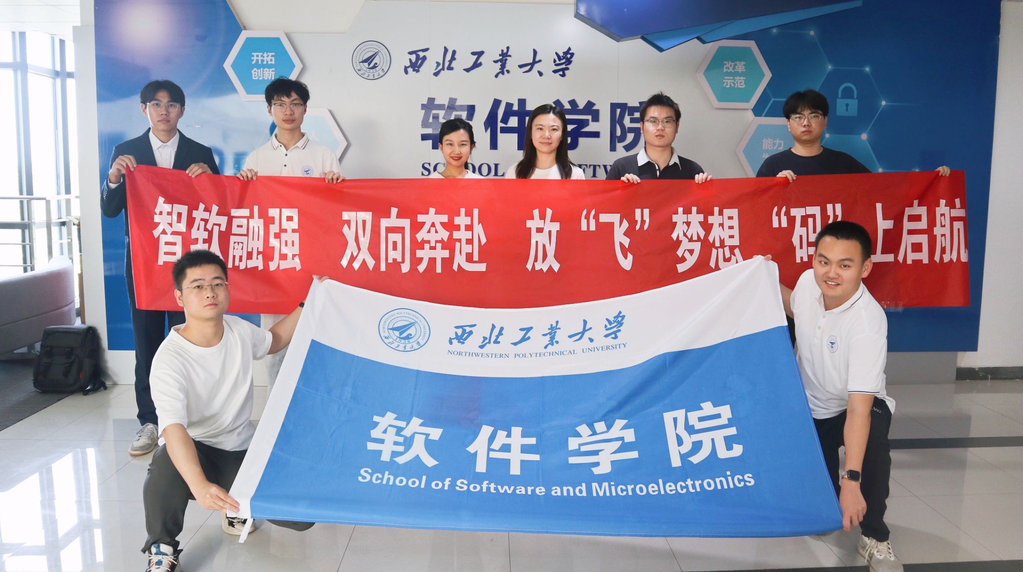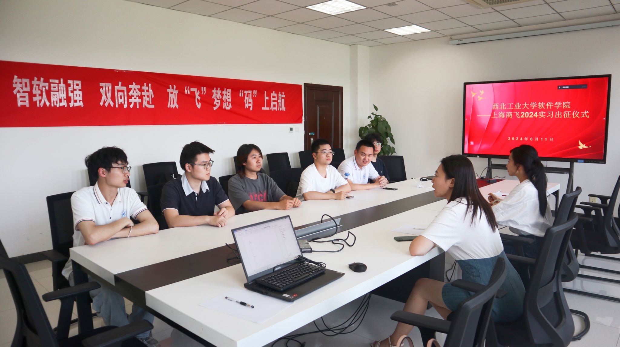 在长安校区启翔楼303会议室举行“智软融强、双向奔赴、放飞梦想、‘码’上启航”上海商飞2024实习出征仪式,番号