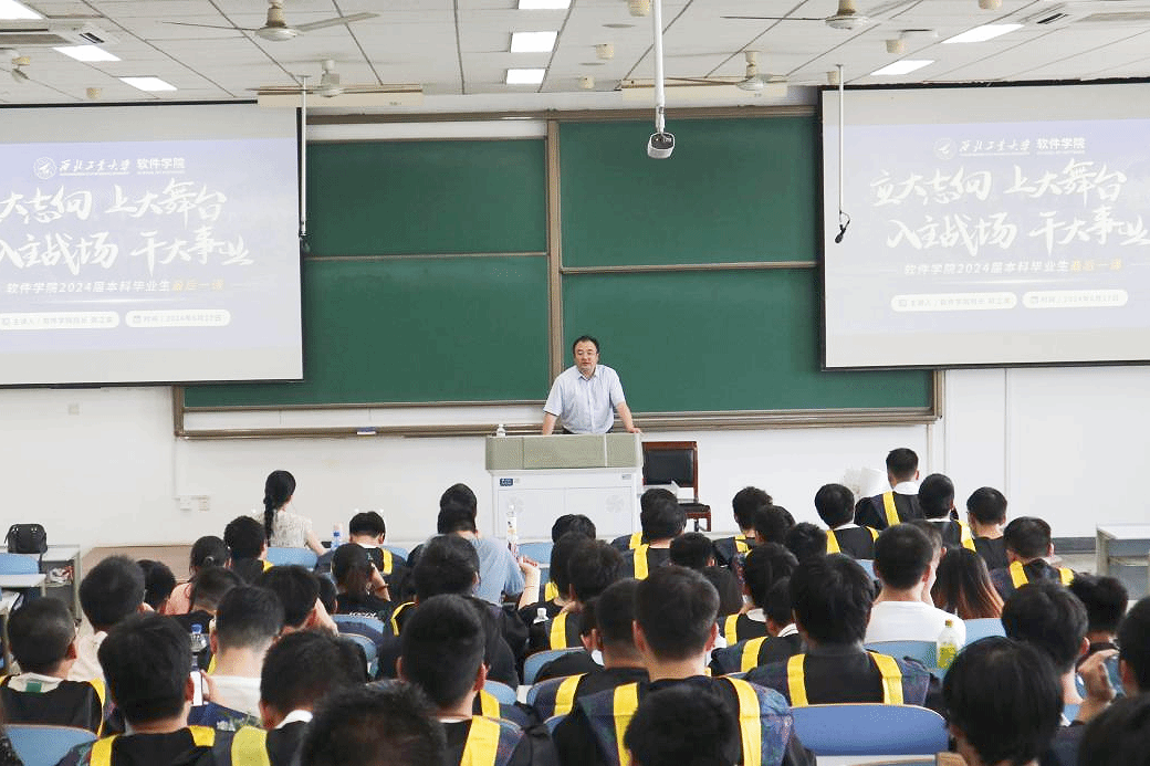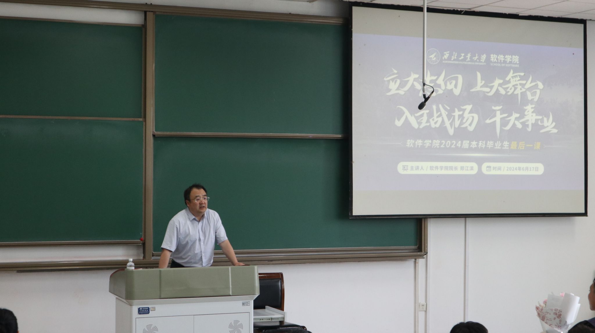 院长郑江滨在教学西楼D座206教室为2024届本科毕业生讲授“最后一课”。本次活动由番号