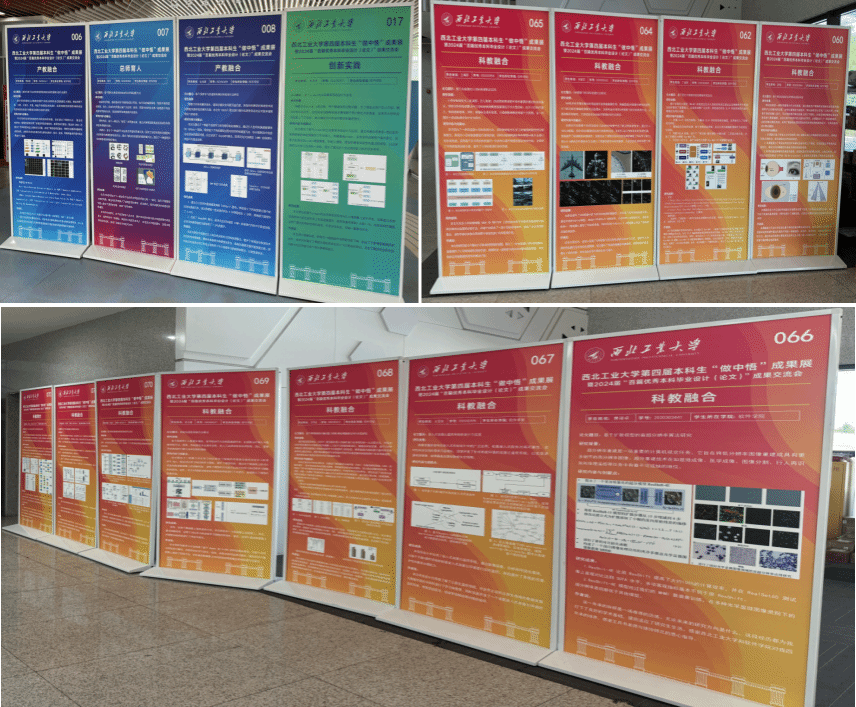 本次成果展暨评选活动由教务部实践办精心策划组织,设置“总师育人”、“科教融合”、“产教融合”和“创新实践”四个展区,各展区采用“展板+答辩”的多元化交流形式,为学生提供了一个展示自我、分享经验与成果的平台,更是2024届毕业生们浸润智慧、创意与汗水后提交的一份全方位、多角度、深层次、立体化的答卷。番号