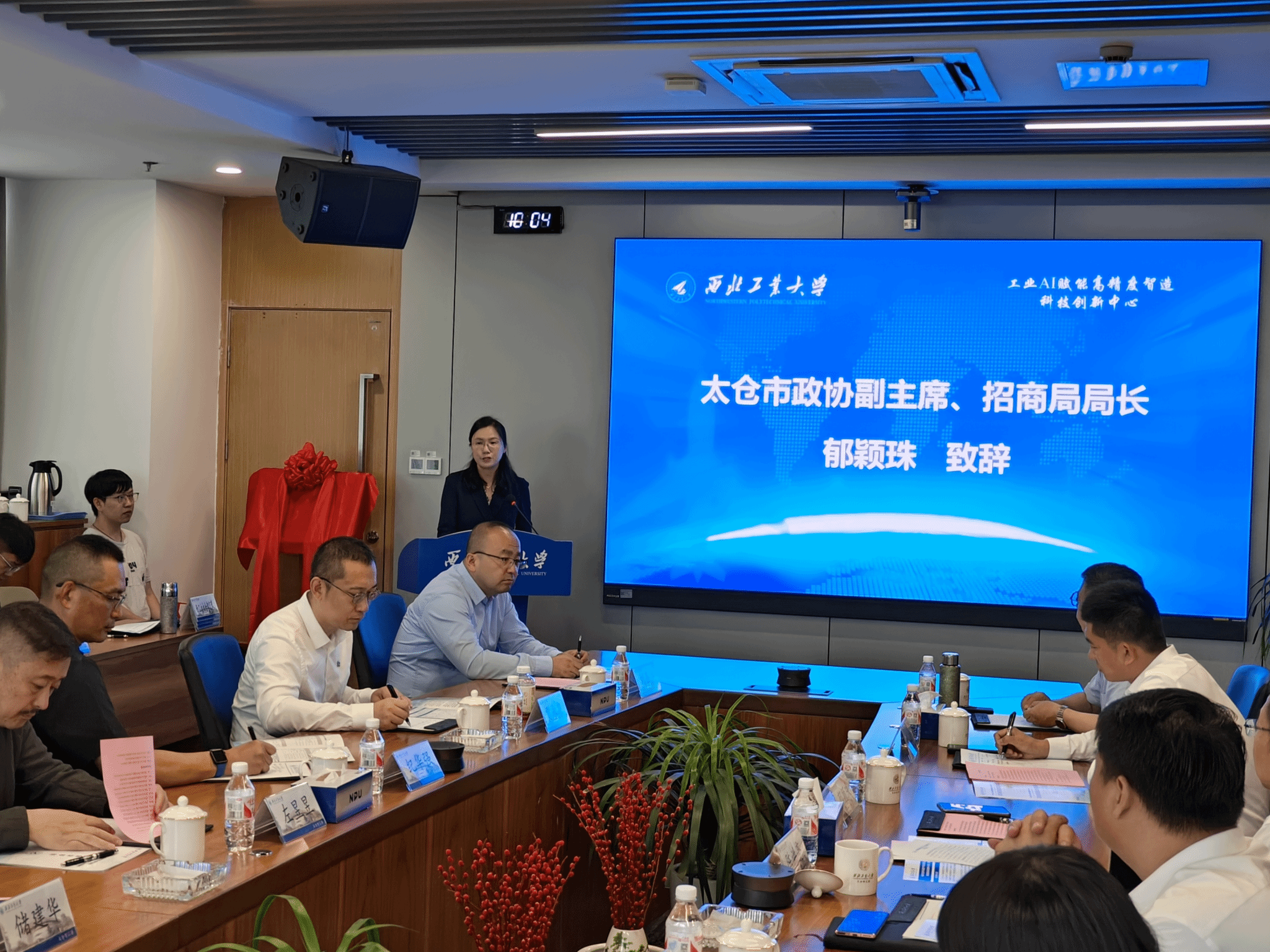 太仓智汇港基本情况以及“三航”科技创新中心建设进展。他希望工业AI赋能高精度智造科技创新中心用好校地企的政策、区位、人才及学科优势,共同打造人机物融合智能计算技术领域科技创新高地。郁颖珠向与会嘉宾介绍了太仓市基本情况以及相关产业发展情况。她希望三方合作下的科技创新中心聚焦智能制造重点领域,促进数字技术与实体经济融合,为太仓的高质量发展注入强劲的科技动力。纪华强、左昱昱、李晗分别发言,表示将全力支持创新中心建设,为中国智造贡献力量。贾永泉介绍了蔚来汽车的整体技术布局以及智能制造的相关成果。张仕进对科技创新中心的筹建工作进行了介绍。
