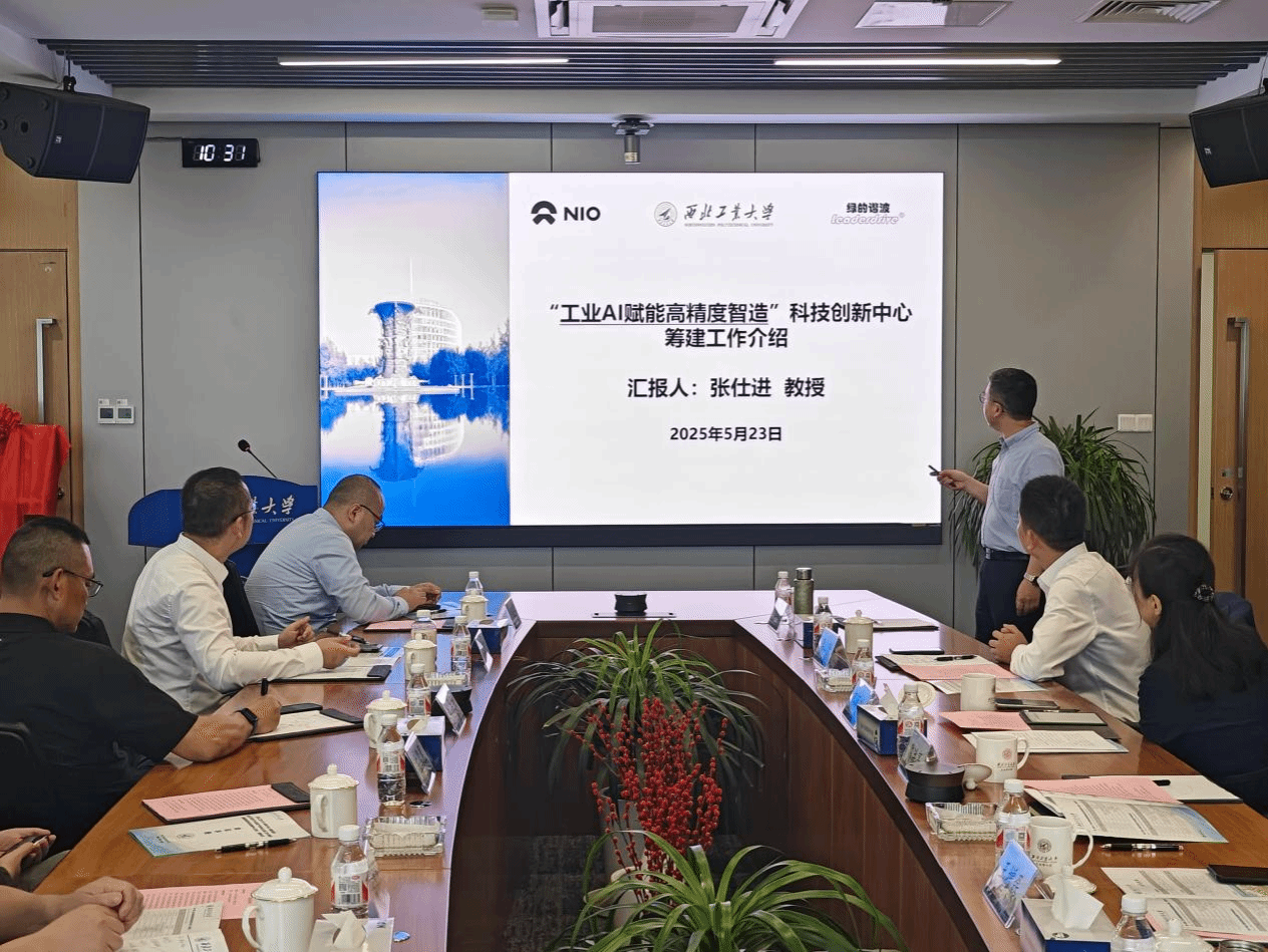 在工业软件、工业AI与智能装备领域的深厚积淀,绿的谐波在工业机器人、精密制造方面的积累及造诣,以及蔚来汽车在整车制造场景中的高价值需求、丰富的汽车制造领域知识及完善的硬件条件,聚焦数字孪生技术、AI算法与工业机理的深度融合,探索从工艺建模到生产执行的端到端闭环创新体系。相关单位负责人见证了共建协议签约并为中心进行了揭牌。