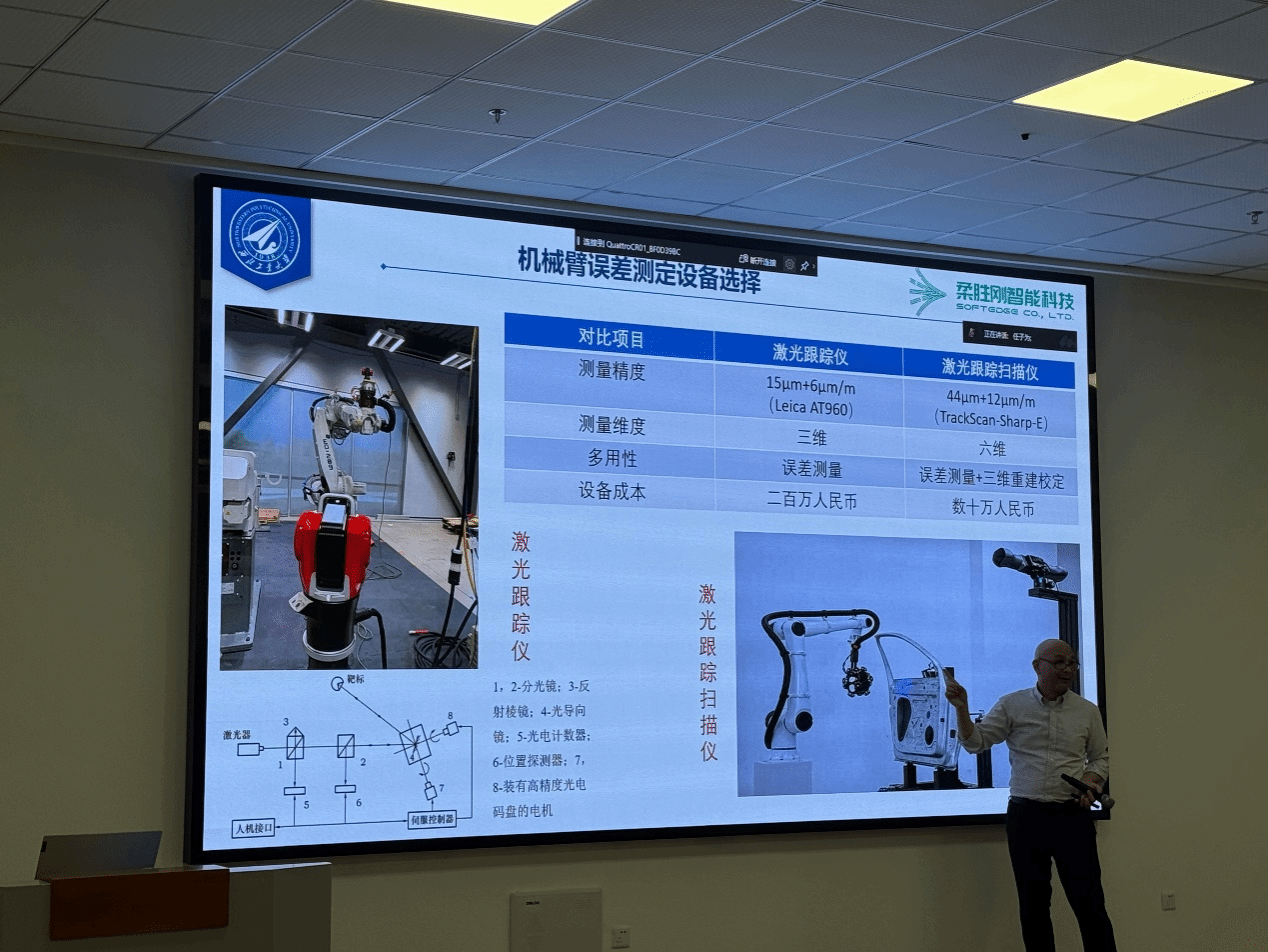 太仓长三角研究院高能束智能加工高端装备及机器人项目团队技术主管曾继跃博士分享了关于“基于物理信息神经网络的机器人绝对定位误差补偿技术”的研究成果,介绍了如何利用物理信息神经网络提高机器人定位的精度和可靠性,为机器人误差补偿提供了新的思路。