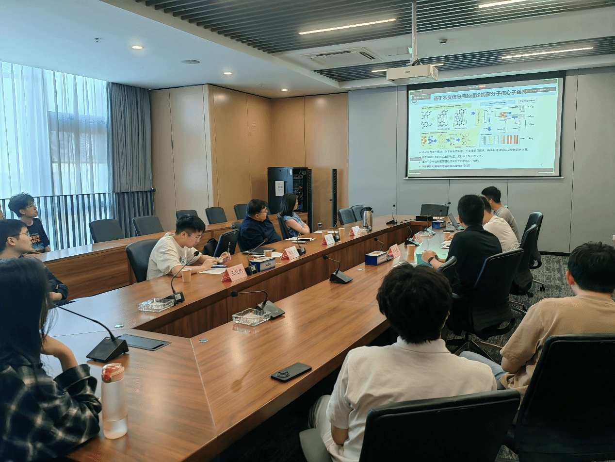 杜文杰的报告围绕“结构决定性质”这一核心理念,系统介绍他及团队近年来在分子交互建模方面的研究进展。分子间相互作用的建模在药物发现、材料设计等领域具有重要意义。然而,由于分子结构的复杂性、多样性以及作用机制的动态性,如何实现可解释、泛化性强的交互预测模型,仍面临诸多挑战。基于上述挑战他首先设计一种可解释的图融合模型用于准确预测分子之间的吉布斯自由能,强调结构信息的物理一致性与表达能力。其次他提出迭代子结构提取框架,基于信息瓶颈理论,从相互作用的分子对中挖掘关键子结构,实现动态且互动式的子结构识别。进一步地,他构建了基于不变性信息瓶颈的模型,用于药物-药物相互作用(DDI)预测,在应对结构分布偏移和提升型稳健性方面表现优越。最后,还探讨了预训练大模型在分子交互预测中的迁移潜力,揭示其对复杂结构语义的建模能力。