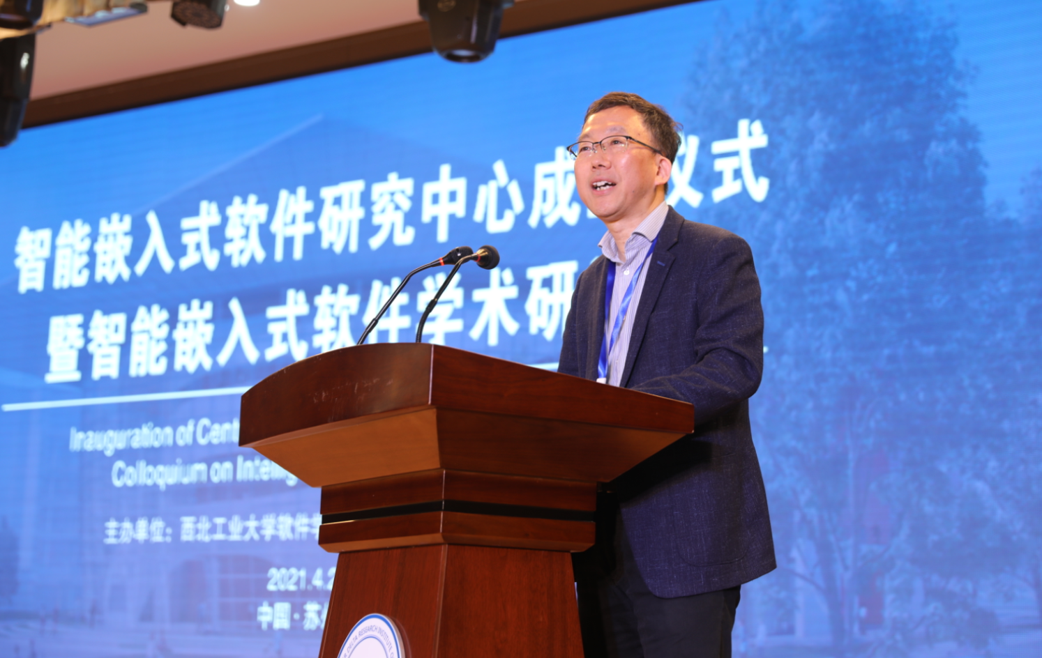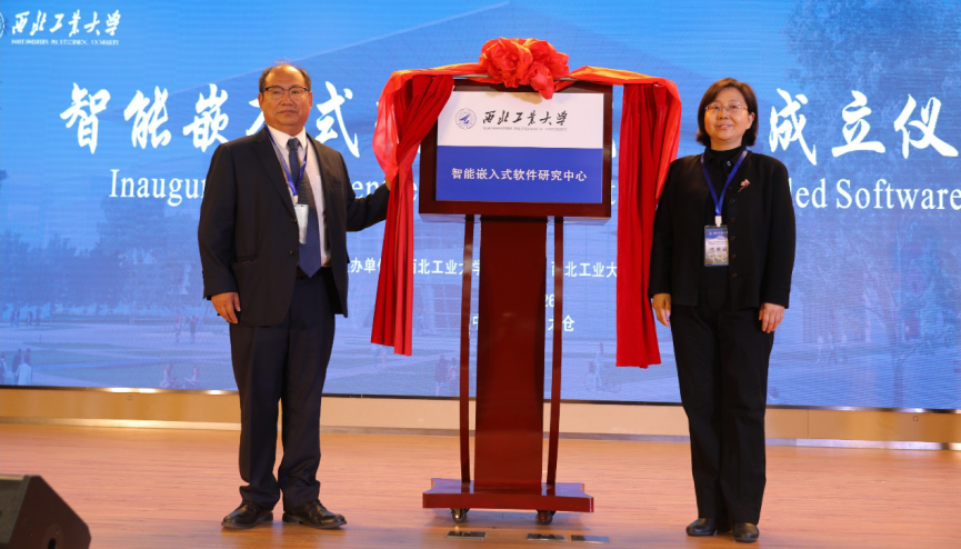校长助理张艳宁教授和研究中心主任刘志明教授共同为智能嵌入式软件研究中心进行了揭牌。副校长张卫红教授为研究中心第一届学术委员会成员颁发了聘书。