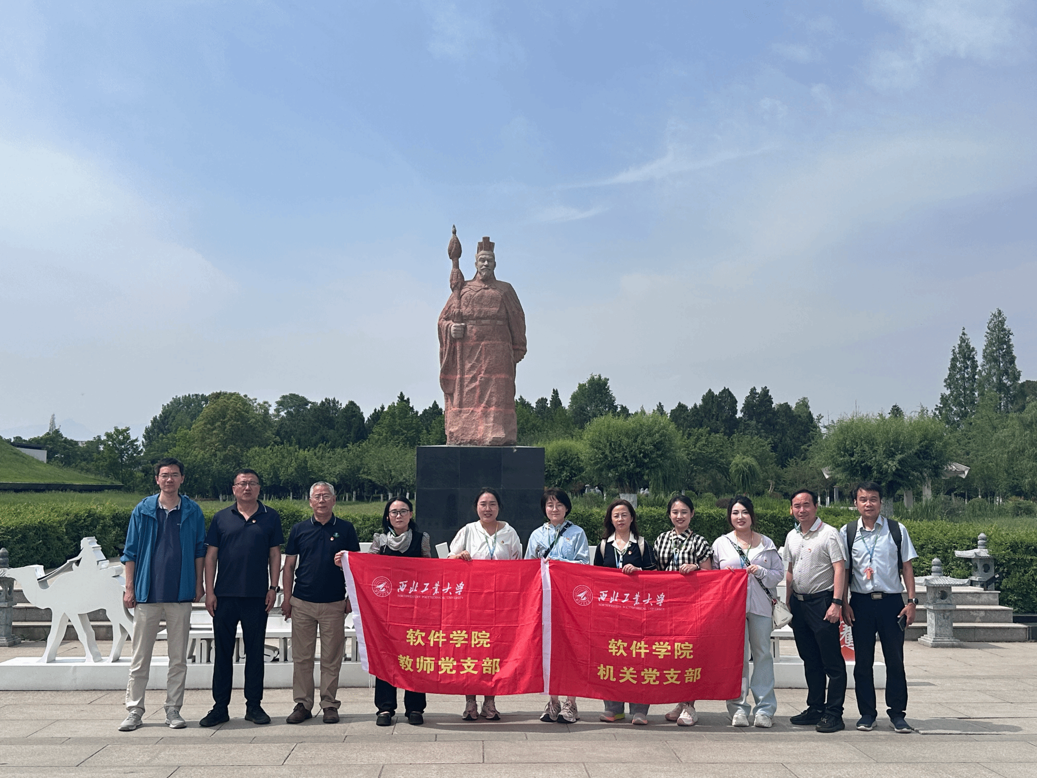 与国立西北工学院一脉相承的精神谱系。在张骞纪念馆,讲解员生动再现了张骞出使西域的壮举,其矢志不渝的开拓精神与 “一带一路” 的时代回响交相辉映,为党员们上了一堂兼具历史厚度与现实意义的思政课。