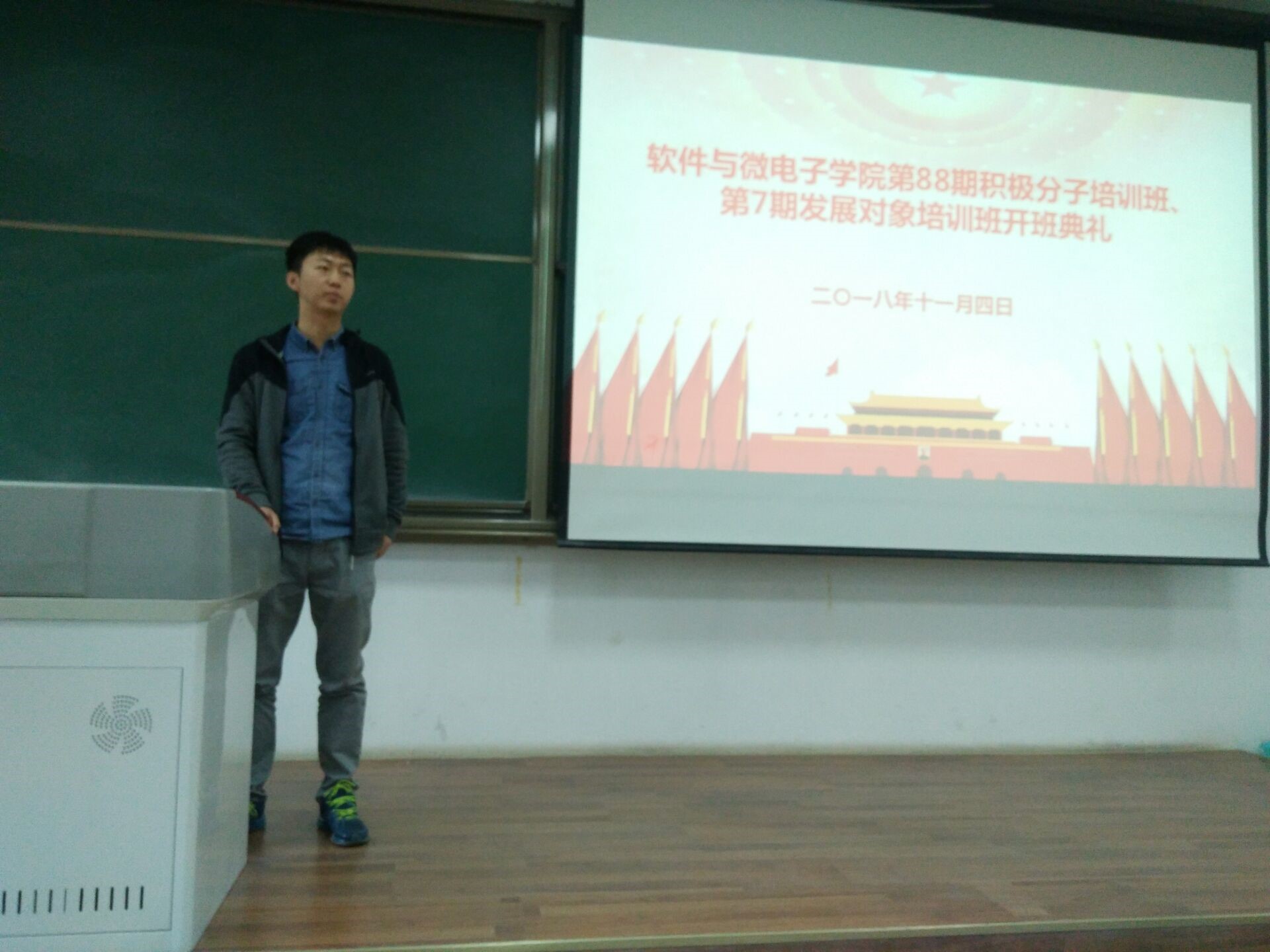 11月4日上午9:00,软件与微电子学院第88期入党积极分子培训班、第7期发展对象培训班在长安校区教学东楼B204教室开课。本次党课由2018级本科生辅导员樊超主讲。