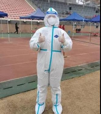 (身着白色防护服的田嘉毅)