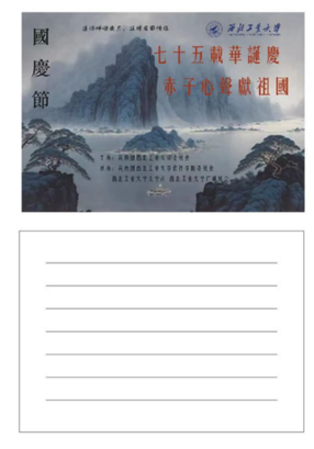 在这个金色的秋天,我们即将迎来一个特别的日子——祖国的生日。为了表达我们对祖国的无限热爱和崇高敬意,我们将举办一场主题为“为祖国献情诗”的诗歌活动。我们诚邀每一位热爱诗歌、热爱祖国的朋友,用你们最真挚的情感,最动人的词句,共同谱写对祖国的赞歌。活动期间,参赛者可以在指定地点领取特制的明信片,围绕“对祖国的爱”这一主题进行诗歌创作,诗歌形式不限,可以是现代诗、散文诗、古体诗等。活动结束后,校文学社组织评委团队,对所有提交的作品进行评审,根据其创意、情感表达和文学价值评选出最佳作品。此次诗歌创作赛道不仅是对创作能力的考验,更是对祖国深情厚谊的表达,弘扬爱国主义精神,增强校园文化氛围,让学生们在诗歌中表达对祖国的热爱和对未来的憧憬,彰显西工大学子的爱国精神。