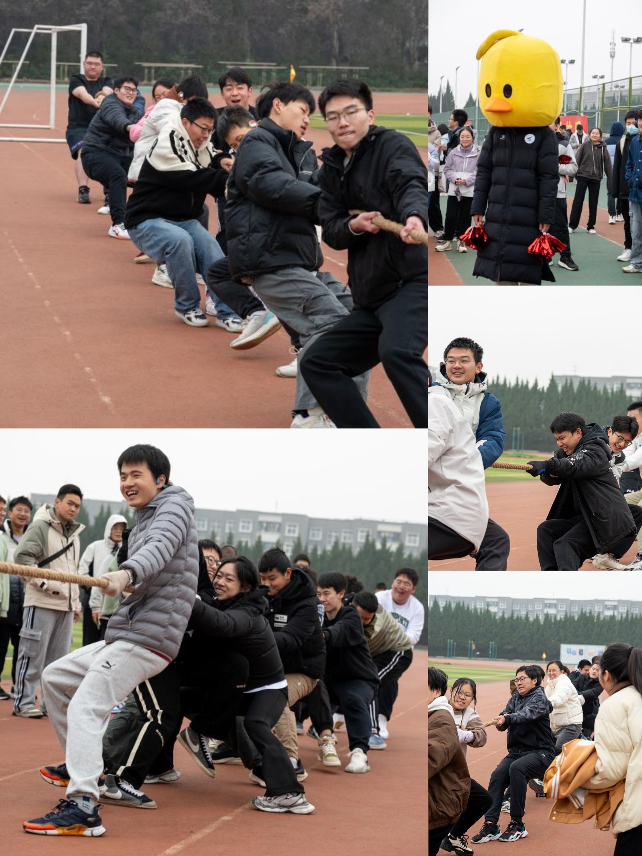 拔河赛场,无疑是一片热血沸腾的“战场”。粗粝的麻绳横亘在场地中央,两端是摩拳擦掌、斗志昂扬的各班勇士。他们紧握绳索,双脚生根似的扎在地上,那坚毅的神情仿佛在诉说着对胜利的志在必得。随着裁判一声哨响,比赛瞬间点燃。一时间,呐喊助威声如雷鸣般响彻云霄,此起彼伏,似要冲破这冬日的寒寂。那一张张涨得通红的脸庞,既有因用力而扭曲的紧张,更有绝不言败的倔强。双方队员们身体后仰,倾尽全力往后拉,那根紧绷的绳索宛如一条蓄势待发的巨龙,在两队之间僵持不下。