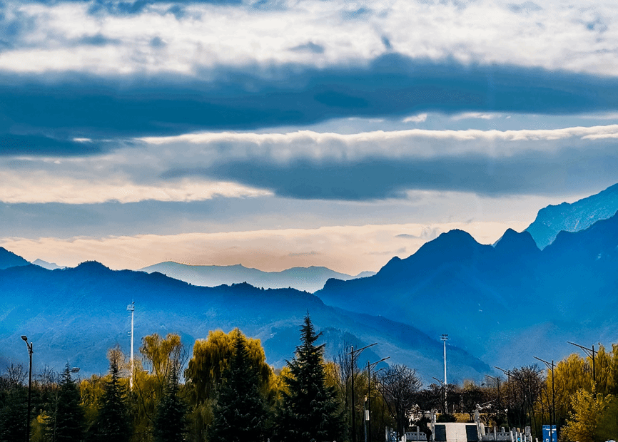 这张图片是某个阴沉冬日,作者上学前所摄。云海苍茫,秦岭巍峨,层峦迭起,气势磅礴。因为繁忙的学业积郁已久的心又为此澎湃起来,有了继续努力下去的动力。