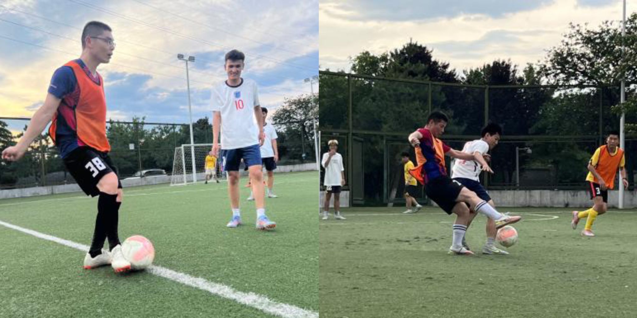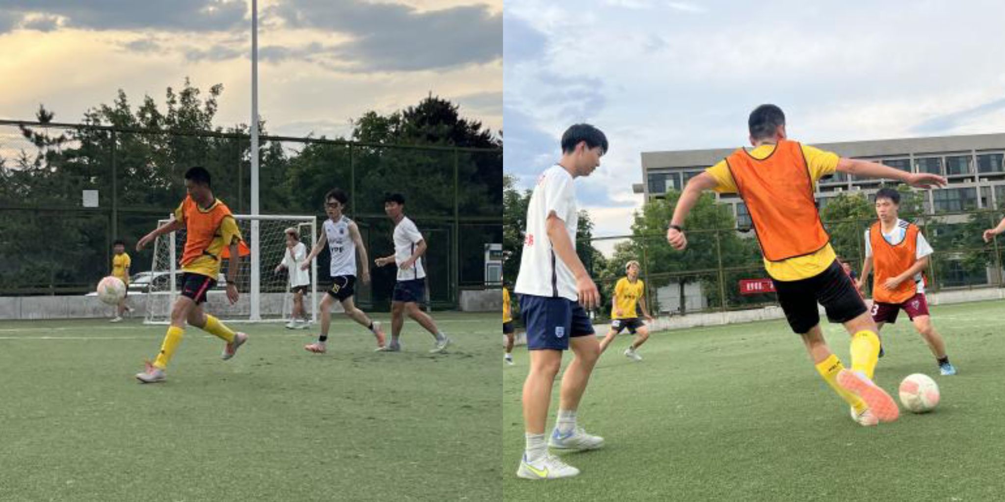 随着裁判一声哨响,李晗带领的本科生低年级队和23届毕业生队开始比赛,两支队伍凭借着精湛的球技,出色的运动素质和巧妙的战术配合展开了激烈的比拼。