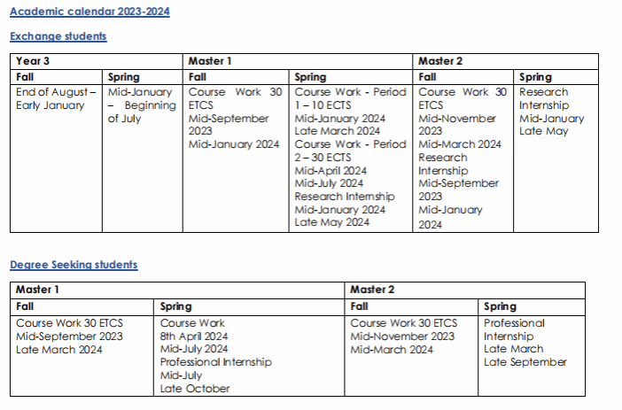 硕士工程师2年/3年 : 6个全英语授课课程 / 6个全法语授课课程
