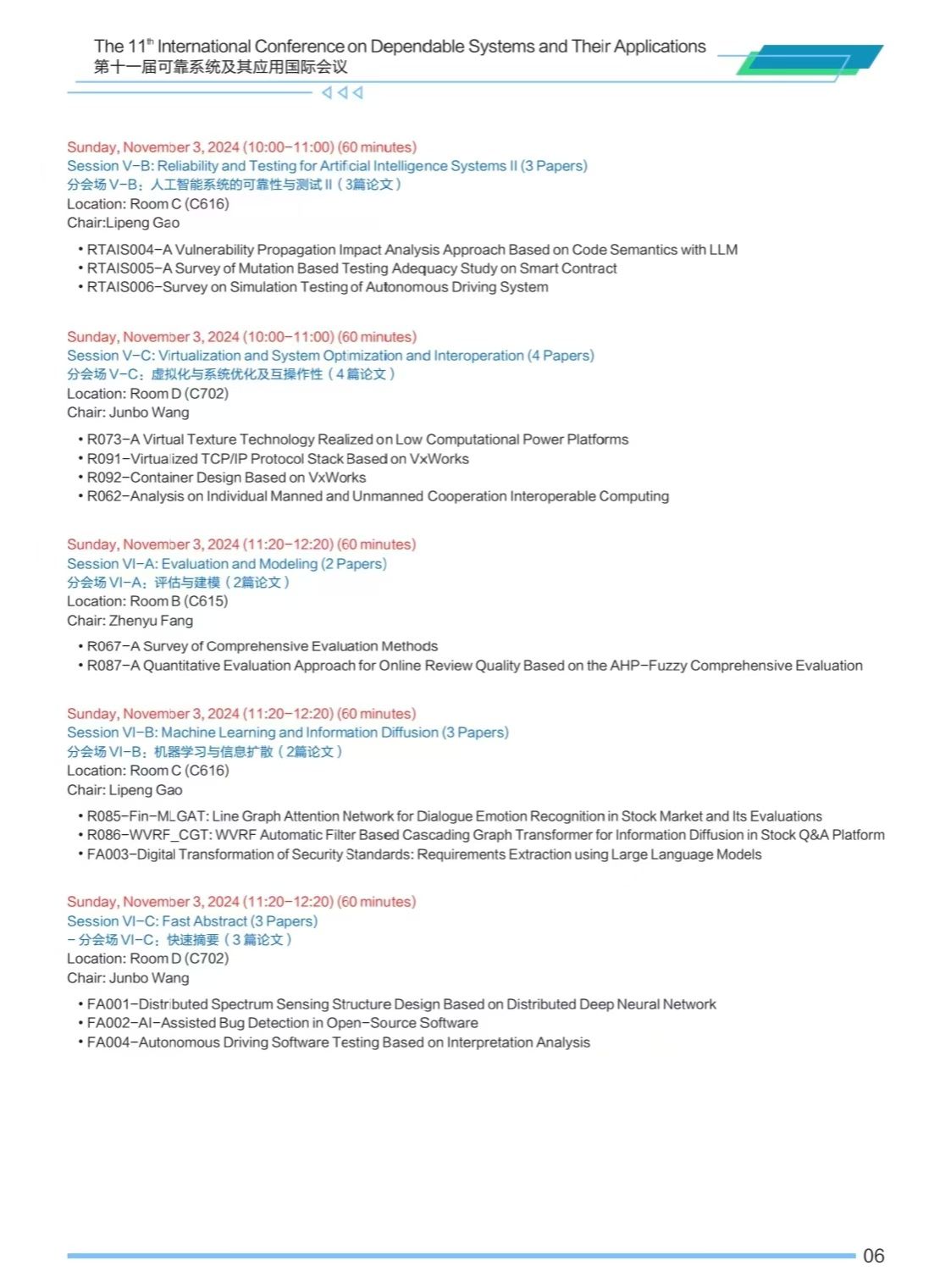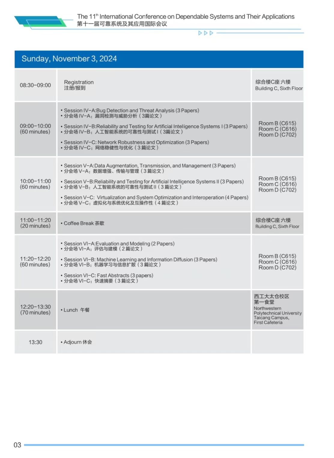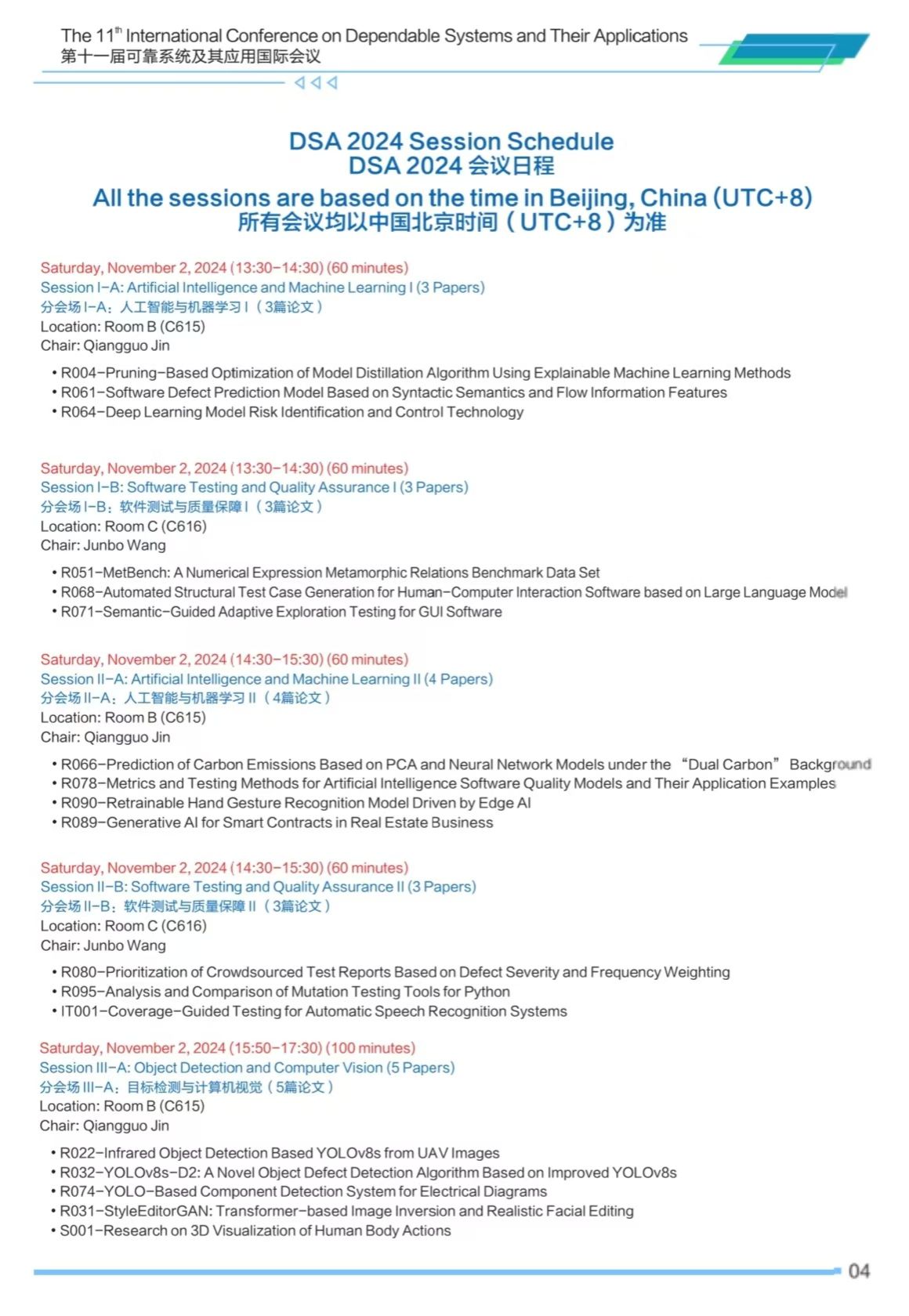 第十一届可靠系统及其应用国际会议(DSA 2024)将于2024年11月2日-3日在番号 太仓智汇港举办,会议安排如下,欢迎各位专家学者参会交流。