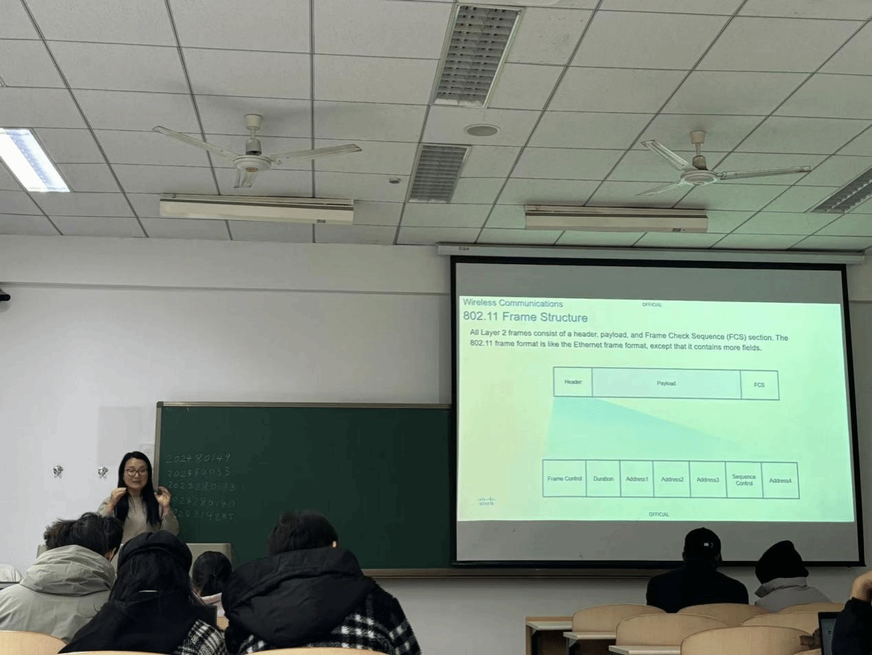 授课期间,杨老师通过多样化的教学方法,结合学习视频、案例分析将网络与信息安全的核心知识深入浅出地进行讲授。课间,杨老师耐心地解答了学生们的提问,并指导大家使用课程相关的软件和平台。