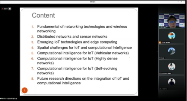 邀请了日本电气通信大学(The University of Electro-Communications)策力木格(Celimuge Wu)教授为我校学生讲授Intelligent IoT(Internet of Things)智能物联网课程,课程于7月13日正式开讲,并于7月20日圆满结课。