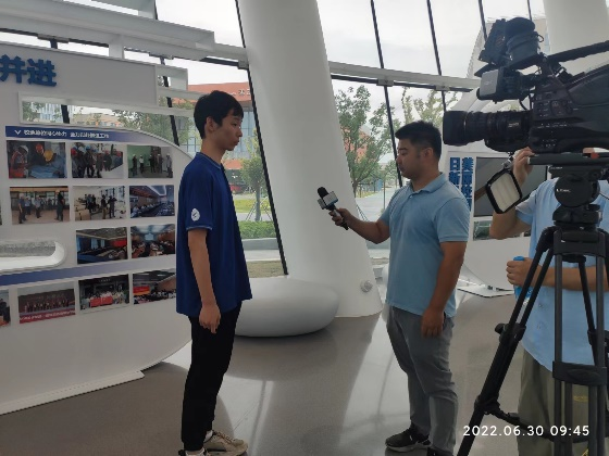 学生代表石浩然同学发言并接收采访