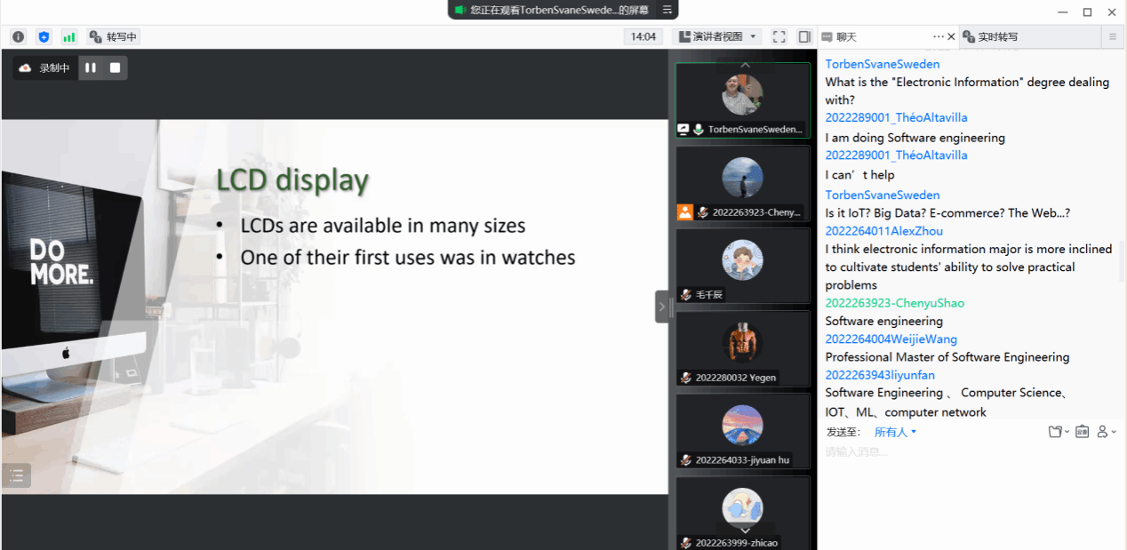 瑞典外教Torben在线讲授TTIS课程并与学生积极互动